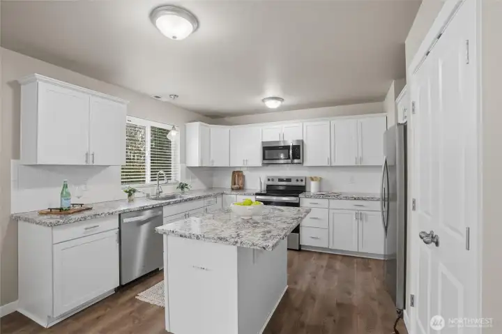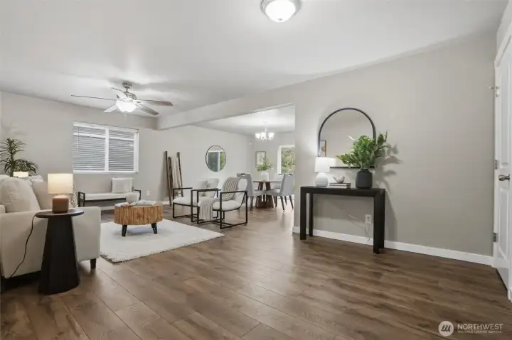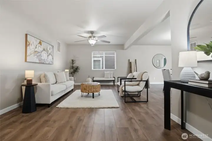 Updated 3-bedroom, 2.5-bath home in desirable Manchester featuring an open-concept layout and spacious rear yard. Recent upgrades include fresh interior paint, new flooring, updated carpet, and modern window fixtures throughout. The kitchen offers quartz countertops, stainless steel appliances, and a functional layout ideal for everyday living and entertaining. The generous primary suite includes an attached bath and walk-in closet. Additional features include ceiling fans, efficient forced-air heating with a heat pump for year-round comfort, epoxy-finished garage flooring, and an attached 2-car garage. Conveniently located near schools, the Manchester waterfront, and the Southworth Ferry with easy access to Vashon Island and Fauntleroy.