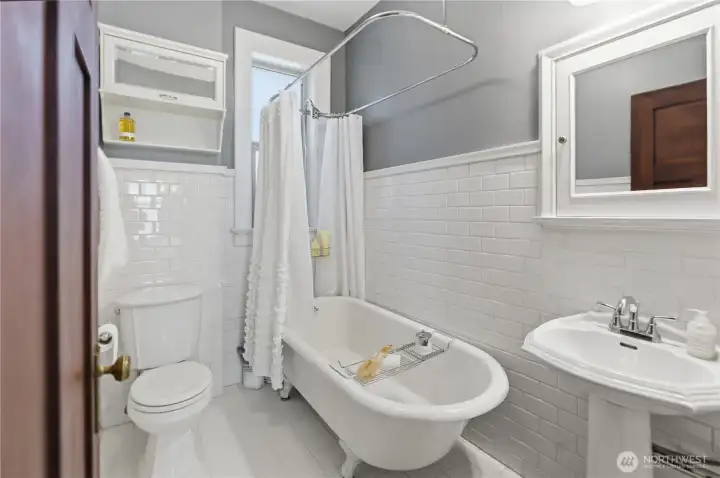 Classic deep claw footed tub and ample spaced bathroom