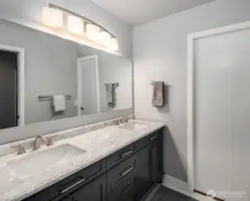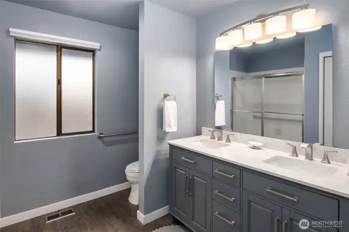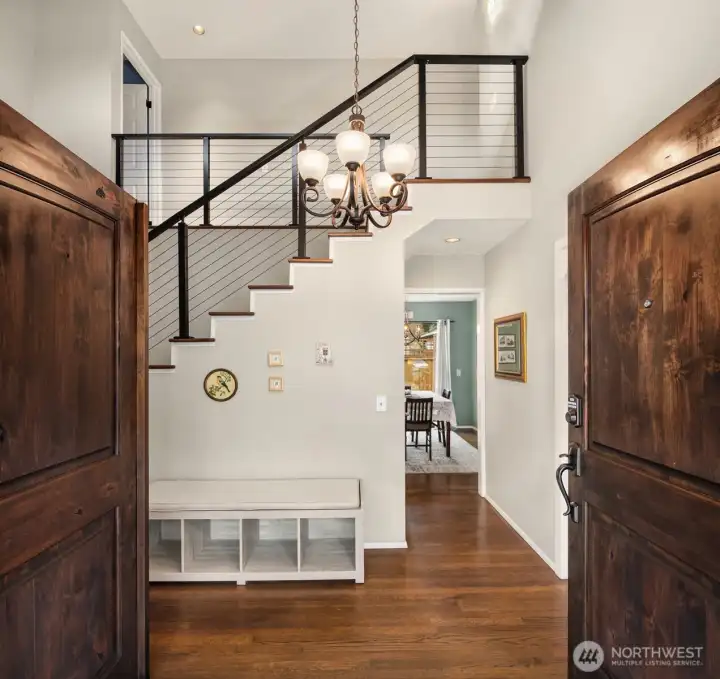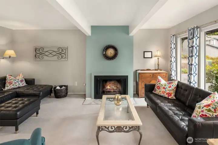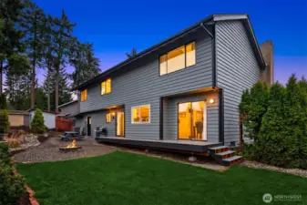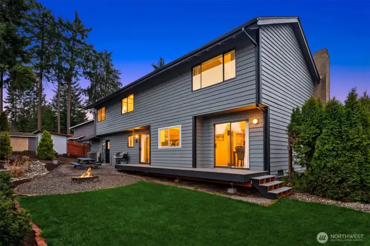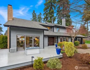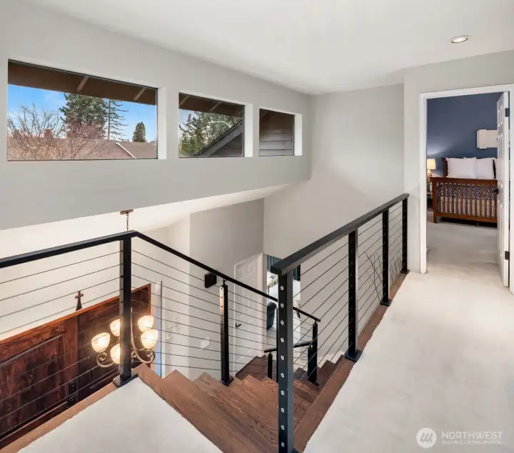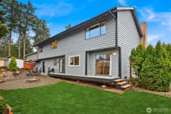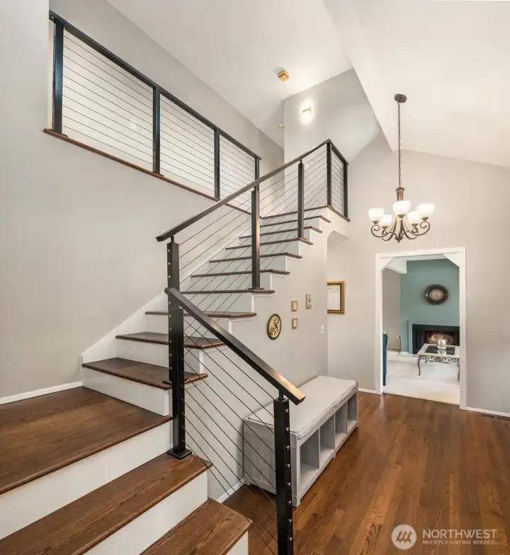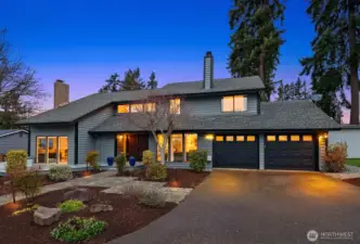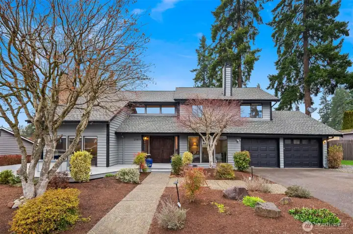 Tucked away on a coveted cul-de-sac in Edmonds esteemed Esperance neighborhood, this contemporary stunner dazzles with dramatic architecture, upscale finishes & captivating curb appeal! Manicured grounds, sprawling wrap-around front porch & covered entry lead to impressive double-door foyer with solid oak hardwoods, soaring ceilings & modern cable-rail staircase with open loft. Brilliantly designed, the 2,420sf, 4 bed, 2.5 bath floor plan features spacious rooms, oversized windows & abundant natural light. Living room with vaulted open-beam ceiling, towering brick fireplace with floating hearth & floor-to-ceiling windows opens to formal dining with glass slider to new deck. Upgraded chef's kitchen with granite counters, cooktop island, double ovens & dining nook with 2nd slider opens to huge family room with fireplace & wall-to-wall windows. Grand primary suite with cathedral ceilings, designer bath with dual-sink marble vanity & pocket-door to walk-in closet. Laundry room with deep stainless steel utility sink. Massive garage with custom cabinetry & new doors with privacy glass accents. Beautifully landscaped backyard with fire pit & storage shed. New high-efficiency furnace, central A/C & more. Short walk to prized schools with rapid access to major highways, medical facilities & downtown Edmonds waterfront!
