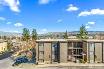 Premier Westridge Living, Top-Floor End Unit. Experience the best of Wenatchee from this beautifully updated top-floor condo. As a rare end top-floor unit, this home offers privacy and sweeping, panoramic views of the Columbia River, the city lights, and iconic Saddle Rock. The interior radiates modern elegance with brand-new flooring and sleek white quartz countertops throughout. The kitchen has newer appliances, while the updated central HVAC system provides year-round comfort. The sophisticated layout features a primary suite with stunning river views, double closets, and a private en-suite bathroom. There is a versatile second bedroom and second bathroom and the convenience of an in-unit washer and dryer. Step outside onto your private deck to soak in the Wenatchee Valley vistas, or head a few blocks down to enjoy the shops and dining of the vibrant downtown core. This condo offers the ultimate "lock-and-leave" lifestyle, complete with a designated covered parking space and a private storage unit in the basement.