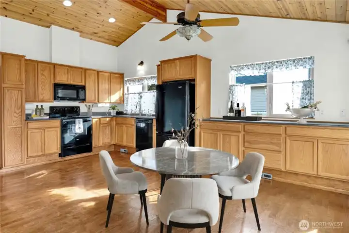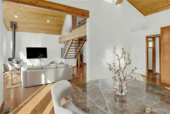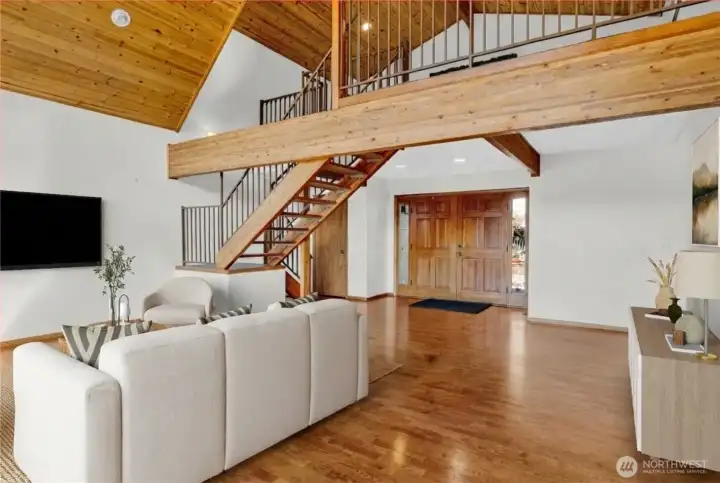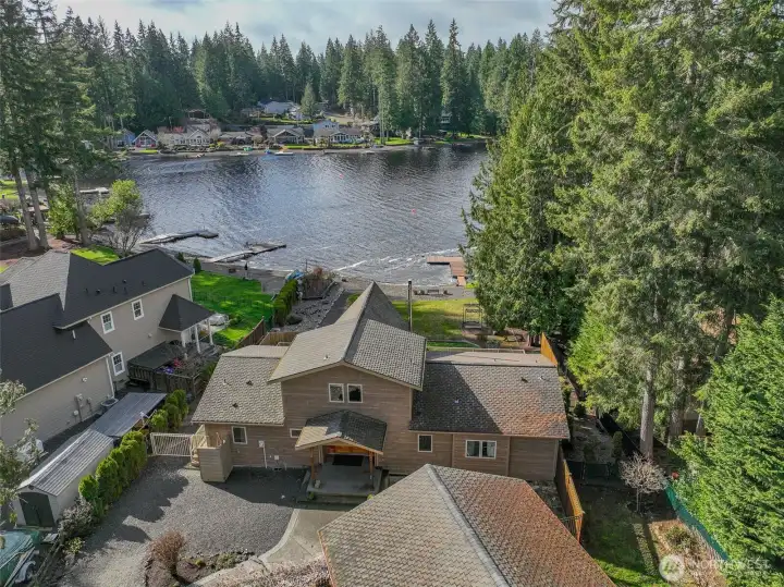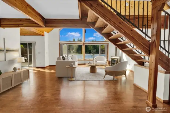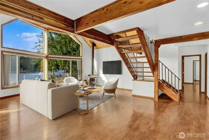 Breathtaking lake views await in this custom waterfront retreat on Lake Limerick, situated on a nearly half-acre lot. With 75 feet of no-bank waterfront and a private dock, your lake toys launch right from the backyard. Inside, soaring vaulted cedar ceilings and a dramatic two-story wall of windows frame the stunning lake views. The open-concept kitchen, dining, and living areas are thoughtfully designed to keep the lake as the focal point throughout the home, while the living room’s cozy wood stove fireplace creates a warm gathering space. The primary suite opens directly to the deck for peaceful mornings by the water, and the spacious upper-level loft offers flexible living space with continued lake views. Stay comfortable on hot days with central A/C. A huge three-car garage plus ample parking provide space for RVs, boats, and guests. Enjoy all that the Lake Limerick community offers, including a 9-hole golf course, clubhouse, private restaurant, parks, swimming areas, boat launches, and more.