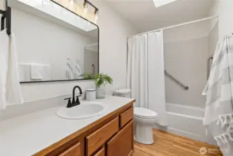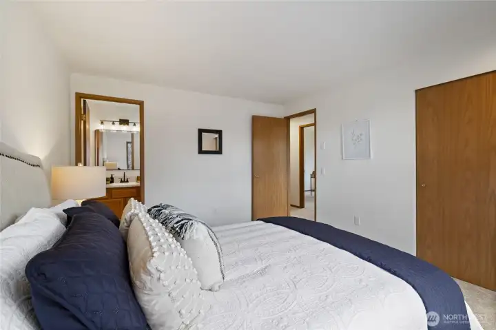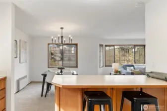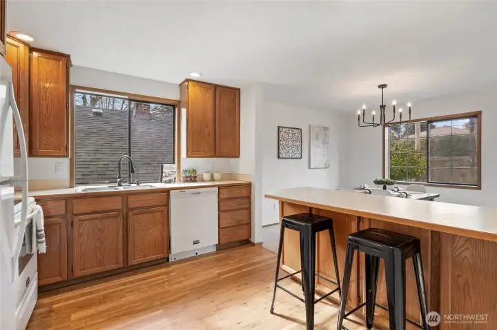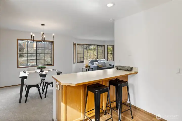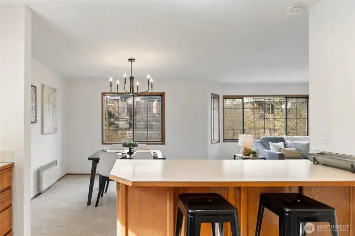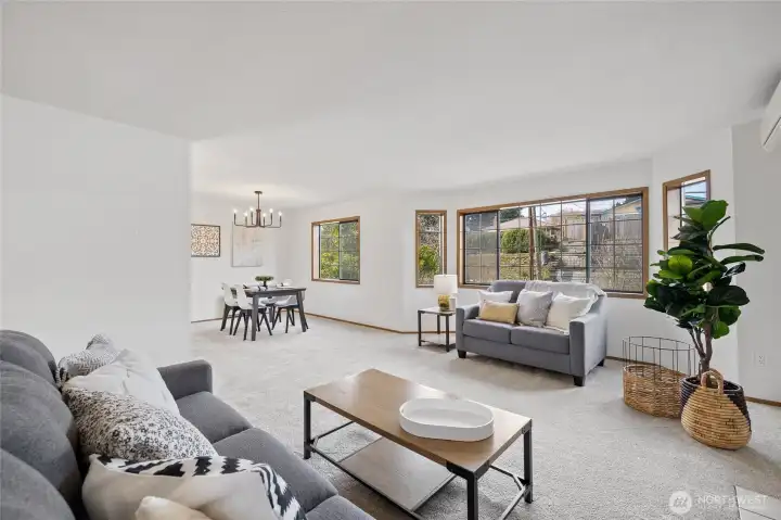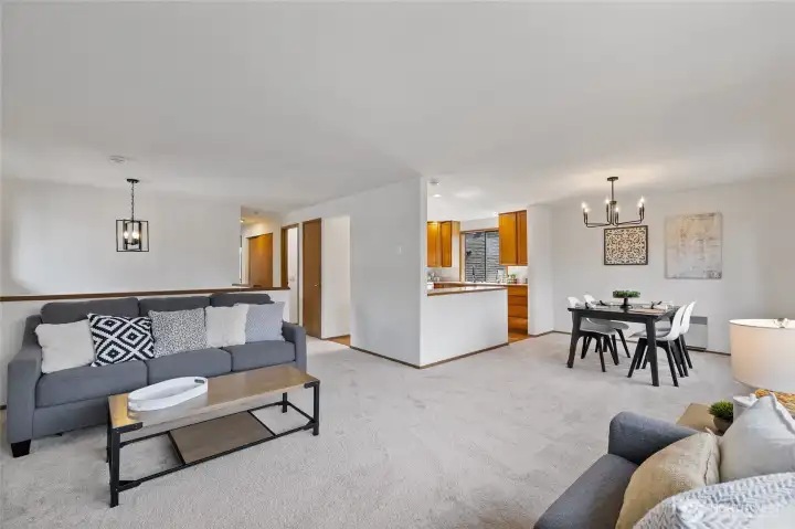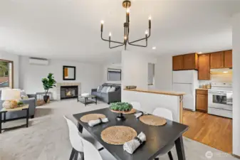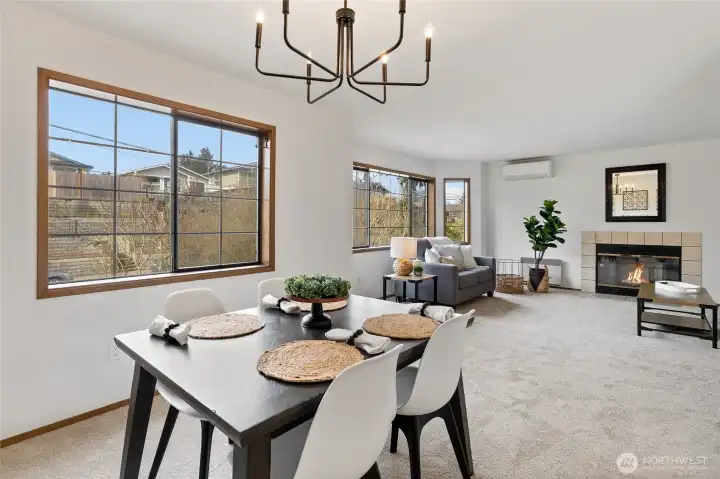 Updated 2 story in desirable Greenwood area of North Seattle. Split entry home provides tons of space on upper and lower floors. New carpet and Luxury Vinyl Plank (LVP) throughout. All new paint on exterior & interior. New lights in all rooms including bathrooms and kitchen. New bathroom & kitchen faucets, new Kohler toilets. Upstairs, there is a wood burning fireplace, large open family room to dining room, and an eat in kitchen with bar area. 2 spacious bedrooms with good natural light + primary suite with its own bath. Several solar tubes which bring more light into each space on the upper floor. Downstairs, there is a big open room, and a joint laundry + 3/4 bath. Deck off of lower family room. Large lot with plenty of potential in the backyard! Mature Magnolia tree is about to bloom. There is ample driveway garage, parking + street parking as well. New Water tank in 2025. Roof is about 5 years old. Pre Inspection available. Move in ready, quiet neighborhood with sidewalks and close to easy commute options. #yournewhome
