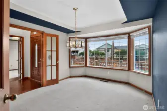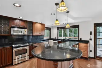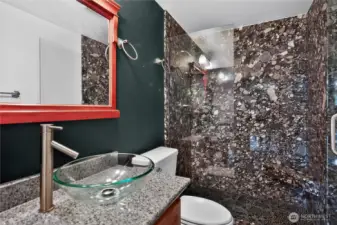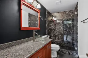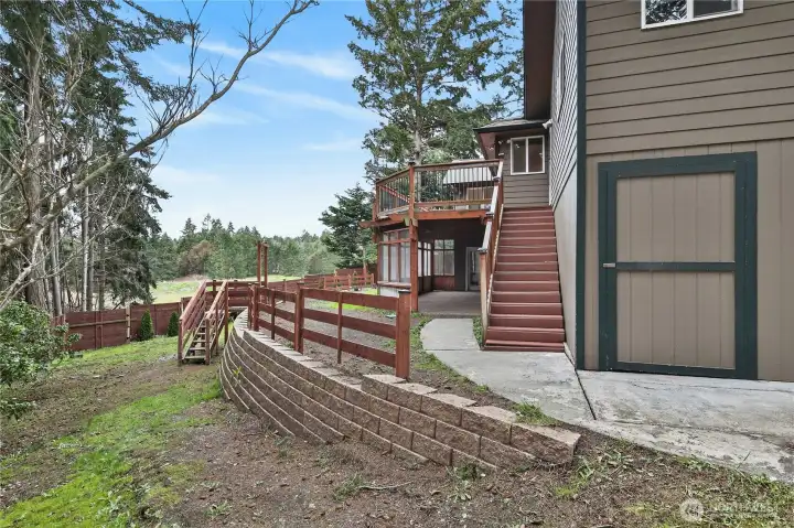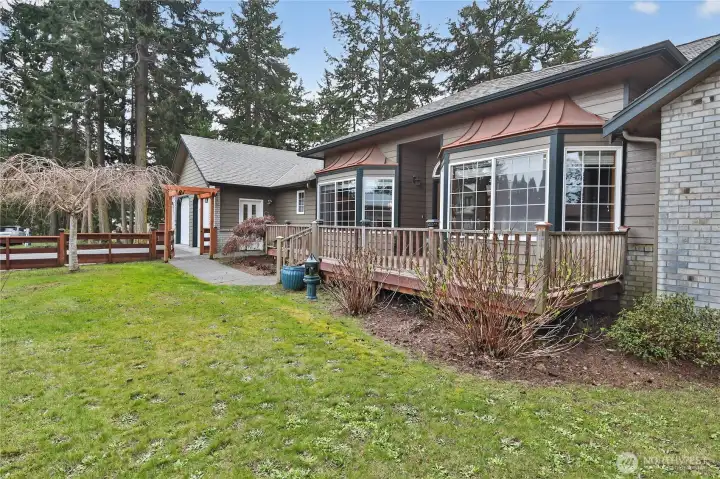 Private Woodland Heights retreat with luxury finishes, flexible living space, and additional buildable .44 acre parcel. This beautifully maintained craftsman home offers approximately 3652 sq ft on nearly .8 ares, including an adjacent .44 acre corner lot for added privacy, investment potential or future possibilities. Inside, granite countertops throughout, including all bathrooms, create a cohesive, upscale feel. The main-level primary suite features vaulted ceilings, radiant heated tile floor & a spacious frameless glass, granite walled shower designed for comfort and relaxation. The vaunted living room with pellet fireplace provides a warm central gathering space, while the coffered-ceiling dining room and office add architectural character. The lower level is ideal for guests or multi-generational living, featuring two bedrooms with individual vanities connected by a Jack-n-Jill bath with tiled walk-in shower, a large family room, a computer room, plus a multi-purpose rom that could be used as another bedroom. Outdoor living is just as inviting with aluminum decking that creates a dry covered patio below, a fully fenced landscaped yard with sprinkler system, and peaceful surroundings. The attached two-car garage with EV charging connects to a hobby room, with adjacent additional parking and a workshop below providing excellent storage and workspace options. Efficient forced-air heating and cooling with heat pump ensures year-round comfort in this quiet Sequim Location