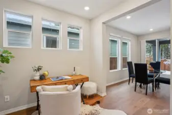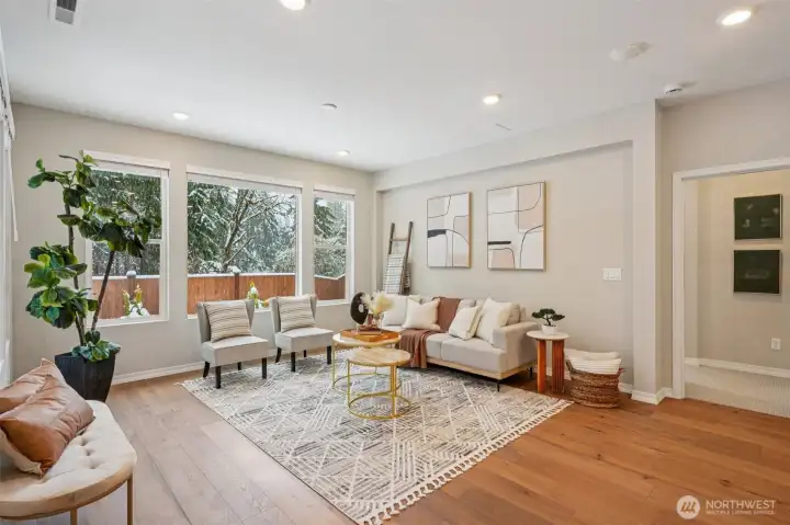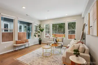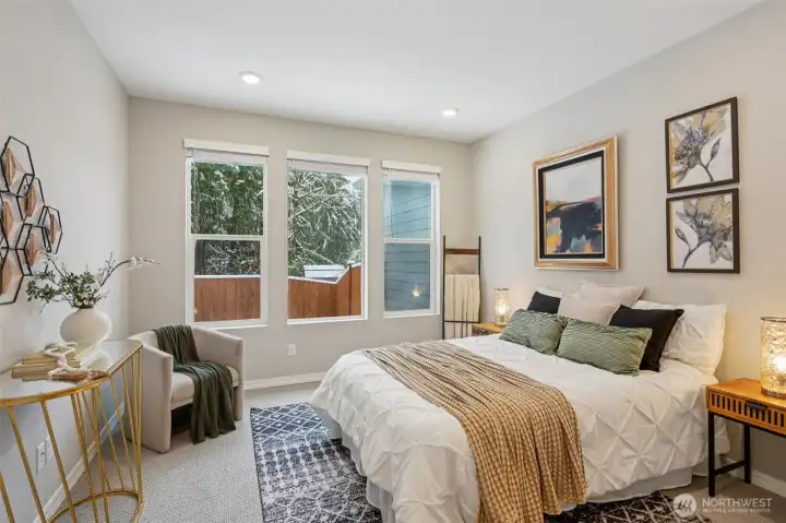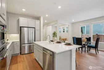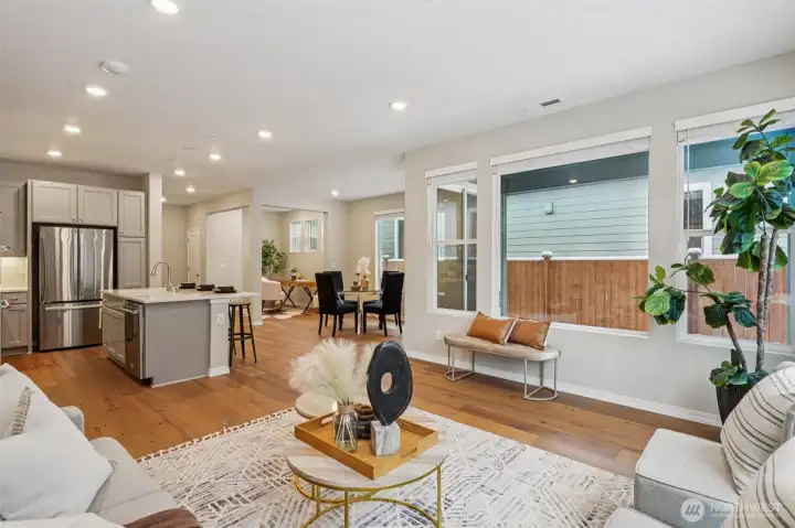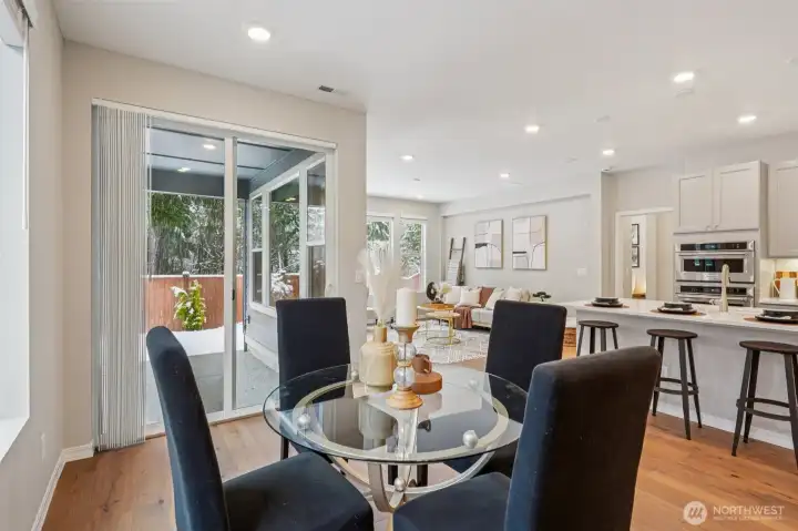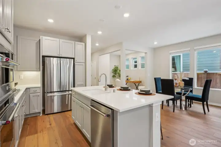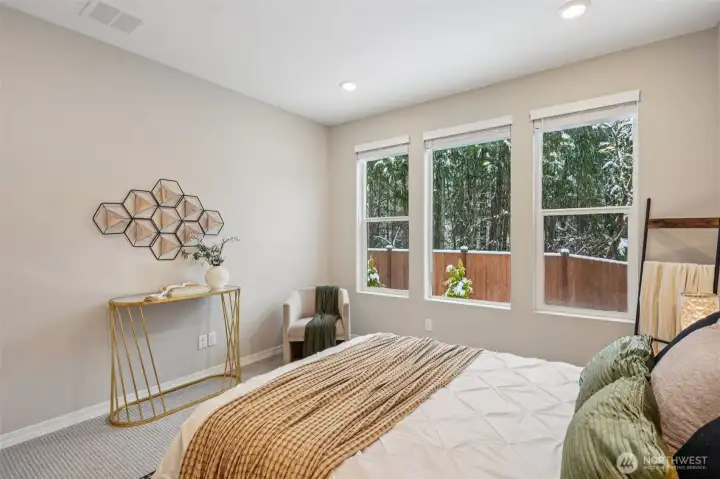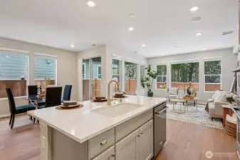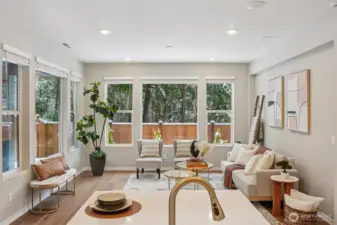 Enjoy the privacy of a peaceful wooded backdrop in the desirable 55+ community of Tammaron at Lake Sawyer! This thoughtfully designed home offers comfortable single level living with a bright, open-concept layout. The kitchen features quartz countertops, a classic subway tile backsplash, soft-close drawers, and a large island that opens to the spacious dining area and great room, perfect for everyday living and entertaining. The private primary suite provides a relaxing retreat with a luxurious ensuite bath and walk-in closet, while guests will appreciate their own comfortable suite with a private bath. Additional highlights include a versatile den or home office and a covered patio ideal for outdoor gatherings. Residents also enjoy access to the community pavilion with picnic tables in a peaceful, park like setting. Conveniently located near the popular Maple Valley area, an ideal location for those who want to stay close to family and shops & amenities.