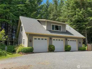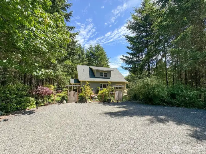 You are invited to enter a gorgeously parked-out Enchanted Forest leading you to a crown jewel property. Comprised of two 5-acre parcels sold together, these Original owners combined care, love and master craftsmanship into a place you can call home. Nestled back beyond the privacy of evergreens and a peaceful natural setting lies a beautiful 2494 SF home with a spacious 3-car garage and an established, Highly Rated 1,000 SF turnkey Air BNB/ ADU atop. Continue the profitable business or utilize as an ADU. The adjacent 5 acre parcel (with newer Barn) has been used for horses. The meticulously kept home(s) have been built and trimmed to the highest standards. This IS a Show Piece.
