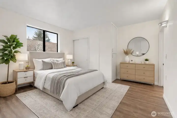 Rare North Seattle opportunity with ADU potential! This unique 5-bed, 3-bath property features two separate units, each with its own kitchen—ideal for rental income or multi-generational living. Enjoy six private parking spaces, fresh interior paint, a renovated kitchen and bathrooms, and new flooring throughout. The private backyard offers a gazebo, garden beds, and two storage sheds. An approx. 400 sq ft basement and a large unfinished lower level provide ample storage and future potential. Conveniently located near Northgate, I-5, shopping, dining, and with easy access to Downtown Seattle—perfect for both homeowners and investors.