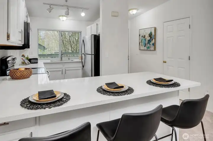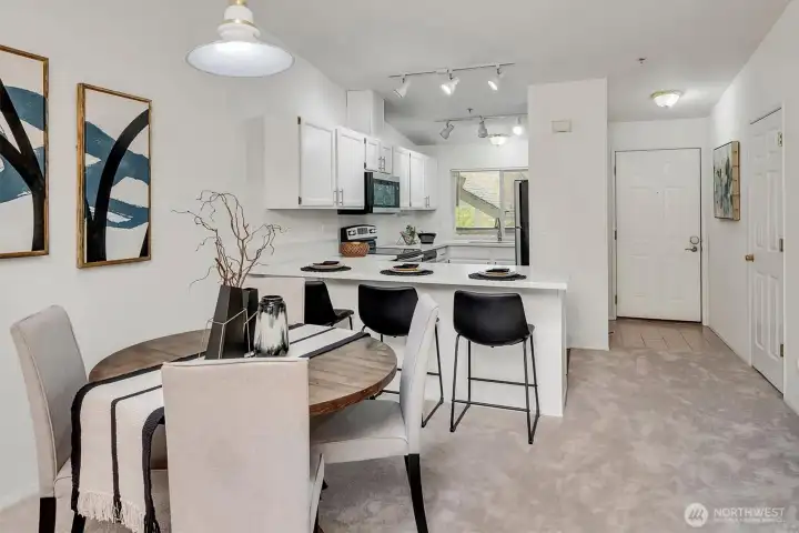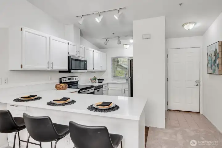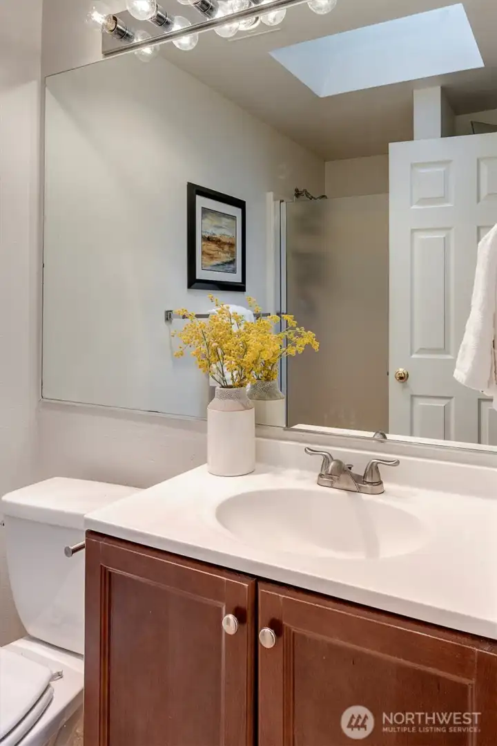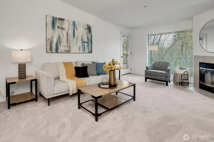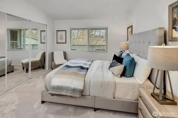 Top-floor living in the heart of Kirkland, this light-filled condo offers vaulted ceilings and serene views of a beautiful birch tree forest. Expansive floor-to-ceiling windows flood the home with natural light, creating a bright and inviting space. The well-designed layout features 2 bedrooms and 2 bathrooms, along with covered parking, an extra storage unit, and EV charging on site for added convenience. Set on Forbes Lake, this community is surrounded by nature, with trails right outside your front door. Directly across the street from the beloved North Rose Hill Woodlands Park, also known as Castle Park, and just a short walk to Mark Twain Elementary, this location offers the perfect balance of tranquility and accessibility.