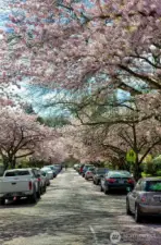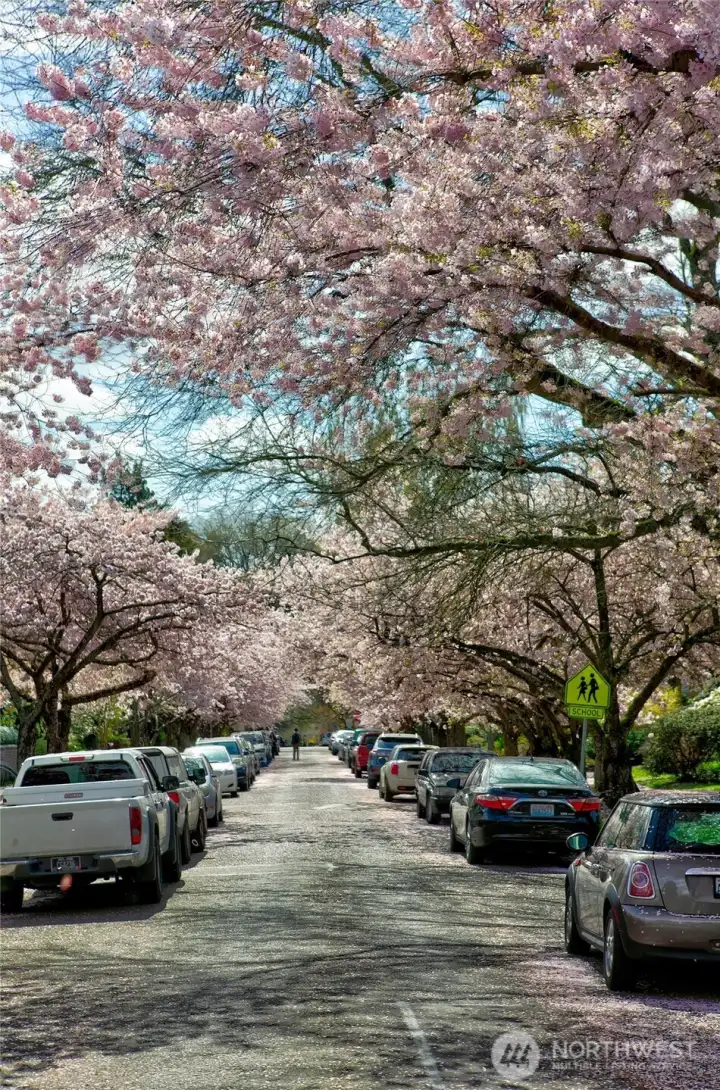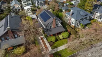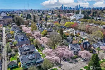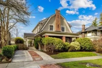 This stately Dutch colonial on a truly special street lined with cherry trees in North Capitol Hill retains the character of its past while offering the modern amenities of today. A driveway leads to a covered front porch and gracious foyer where classic and well-preserved details unfold: zinc mullioned windows, hardwood floors and original millwork. The spacious living room is to your right with windows on three sides, oversized fireplace and double doors to a covered porch. To your left is the dining room. Plenty of space for living and entertaining here. The powder room and first-floor den/office are straight ahead. Large, updated chef’s kitchen with clerestory windows and French doors open to the sunny and tranquil deck and backyard. This is where summers in Seattle were meant to be spent. The open, grand stairwell passes by large stained-glass windows to four spacious bedrooms, each with abundant natural light, along with a full bath and linen closet. The expansive lower-level hosts laundry, the second full bath, and family room, along with substantial space waiting for your ideas to become reality. Maybe a home gym or TV room? There’s also direct access to the backyard. Modern updates include solar panels, newer roof and a heat pump with updated electrical panel. Close to Volunteer Park and with easy access to downtown, SLU, and UW, this special home is set to be loved for another generation. Don’t miss your chance, the last family enjoyed for over 60 years!