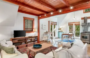 A jewel box! This sweet condo in the Treehouse Condominiums is situated at the end of a dead end street for ultimate quiet and privacy. Desirable location close to Fort Worden. This home has been beautifully remodeled, with bedroom and office/den on main floor and new 3/4 bath. Upstairs has new galley kitchen and coffee station, with Vermont Danby marble countertops and high-end appliances; Bosch dishwasher, Bertazzoni gas range, Miele refrigerator. The dining area is set near French doors that open to two balconies, cozy living room with car decking ceiling, loft bedroom or perhaps an office. Full bath upstairs as well. Wood floors throughout common spaces, vaulted ceiling. This is the a perfect getaway spot whether you are here part time or a full time residence. This warm and efficient home is a place of refuge. Nearby to trails and guest parking. Lovingly maintained, no work to be done, this charmer is move in ready.