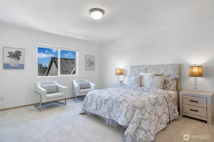 Discover this bright, move-in ready two-story home located in the highly sought-after Northshore School District. Featuring a thoughtful, hard-to-find floor plan with 3 bedrooms, 2.5 bathrooms, and a versatile loft, this residence blends comfort with significant recent updates. Step inside to soaring vaulted ceilings and a spacious great room anchored by a cozy fireplace. The interior feels brand new with fresh paint and new flooring throughout. The kitchen is designed for functionality, boasting maple cabinetry, a center island, a walk-in pantry, and a side-by-side refrigerator, all overlooking a private green garden. The upper level offers a flexible layout ideal for modern living. Retreat to the expansive primary suite complete with a full ensuite bath. Two additional generous bedrooms and a large loft provide the perfect space for a home office, playroom, or media center. This detached condominium home is truly like a SFH. Value-add improvements include a new roof, carpet, garage door, and updated powder room fixtures (all 2025), ensuring peace of mind for the next owner. Situated in a quiet neighborhood just minutes from shopping, dining, and parks. Commuters will appreciate the rapid access to I-405 and I-5. A must-see opportunity for turnkey living.