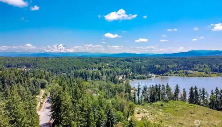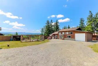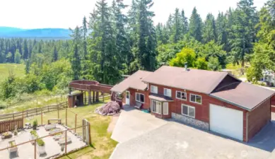 Welcome to Harts Lake! Beautiful custom 2,120sf home situated on 1.85 acres with stunning mountain and lake views. The gated property offers privacy and functionality with a fenced pasture and stalls for animals, plus a dedicated garden space for outdoor living. This home features custom woodwork throughout, a primary on the main floor, with private second story loft-den space and over-sized primary bath. Don't miss the private indoor sauna or outdoor hot tub while taking in the peaceful setting. A rare opportunity to enjoy country living with space and unique amenities. Come fall in love with your views of Mt. Rainier, the Cascades and Harts lake. You will never want to leave this paradise. Extras to be noted- RV garage parking, AC & Wood stove to heat the entire home!