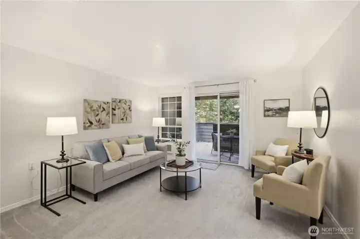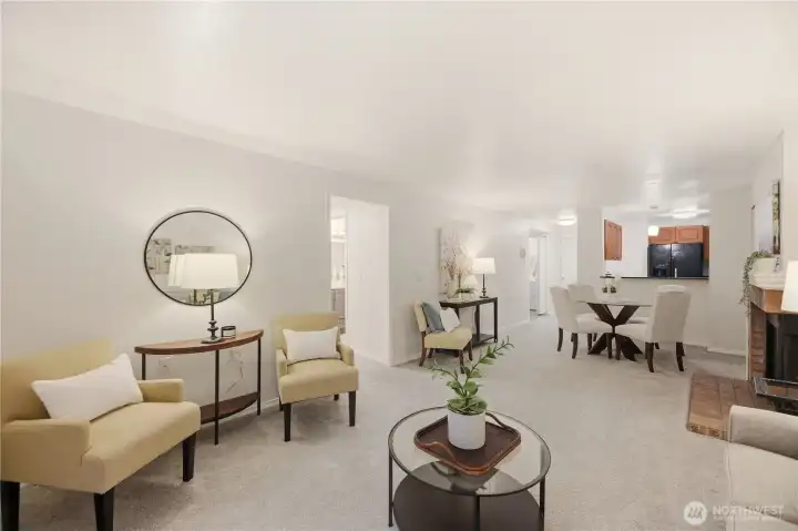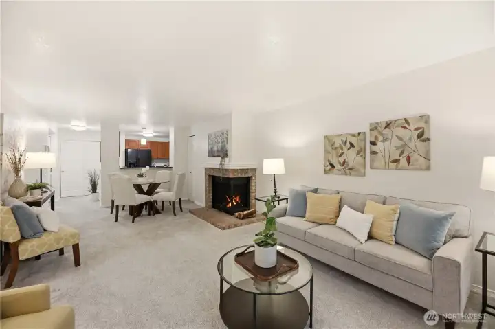 Welcome home to a place that feels effortless & move in ready. This beautifully updated 1-bed, .75-bath condo offers the perfect blend of style, simplicity, & smart living—ideal for first-time buyers, down-sizers, or savvy investors. Zero steps to the front door & reserved covered parking (#108) moments away, everyday living is refreshingly convenient. Inside, warm & welcoming w/ fresh interior paint (2026), updated lighting (2023), & stone countertops for a modern touch in both kitchen & bath. The breakfast bar is perfect for slow mornings or quick meals. Curl up beside the cozy wood-burning fireplace, or step out onto your private deck to enjoy a quiet moment of fresh air. The spacious bedroom offers a peaceful retreat w/ top-down/bottom-up cellular blinds that control natural light while maintaining privacy. A fully renovated bathroom (2023), new carpet & padding (2021), new hot water heater (2021) & PreInspection add comfort & peace of mind. The Country Club community invites you to enjoy an active, connected lifestyle w/ an outdoor pool, athletic court, exercise room, clubhouse, playground, & scenic walking trails surrounded by lush green space. Located mins from Mill Creek Country Club, Mill Creek Town Center & everyday shopping at Town & Country Markets & Fred Meyer, w/ quick access to I-5, I-405, & Hwy 527, you’re perfectly positioned for both convenience & lifestyle.