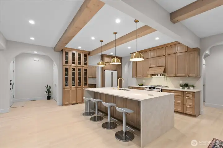 Experience luxury living in this stunning 5 bed, 3 bath custom home with a 2-car garage, surrounded by peaceful greenbelt views . The home features soaring 16-ft ceilings in the living room, exposed natural fir beams, and a striking natural stone fireplace. The chef’s kitchen offers quartz countertops, premium Café appliances, and a gorgeous luxury walk-in pantry with its own sink. Enjoy high-end finishes throughout including LVP flooring, custom built-in cabinetry, a spa-style custom tile walk-in shower, and a relaxing soaker tub. From Douglas fir framing to solid core interior doors and fully wrapped windows throughout, this home is built with quality materials and true craftsmanship. Additional highlights include a metal roof, natural stone exterior, T&G pine soffits, wiring for a generator, glass garage doors, and an EV charger . A dual-sided gas fireplace connects the living room to the covered wrap-around deck, creating seamless indoor-outdoor living. Located in the highly desirable Sudden Valley community, you’re just minutes from town yet next to the lake in your own private paradise. Sudden Valley offers incredible amenities including community parks, private beaches, scenic trails, lake access, a community pool, playgrounds, clubhouse, and restaurant—perfect for enjoying the best of the Pacific Northwest lifestyle.