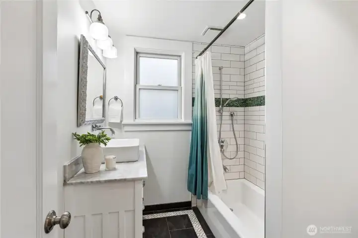 In the center of the highly sought-after Phinney Ridge/Green Lake/Greenwood triangle, this home perfectly balances vintage character with a forward-thinking, eco-conscious lifestyle. An interior bathed in natural light highlights timeless architectural details like coved ceilings, classic built-ins, and pristine hardwood floors. The living room’s original hearth serves as a centerpiece, leading naturally into an open dining area designed for hosting. The true heart of the home is the designer kitchen with premium finishes and custom cabinetry, handcrafted by a local artisan, created to inspire and reinvigorate your daily routine. The footprint extends to an additional 880 sq. ft. of finished basement space, a versatile canvas for a home gym, media room, or professional studio. Outside, the sprawling 6,000 sq. ft. lot is a private sanctuary. Enclosed by a lush privacy hedge, the grounds feature mature fruit trees, expansive lawns, and a secluded hot tub for evening relaxation. Modern logistics are seamless with off-street parking and a dedicated EV charging station. Yet, the real draw is the location: with an exceptional walk score of 90, you are moments away from Green Lake, the scenic trails of Woodland Park, the Zoo, and the curated boutiques and award-winning dining that define this vibrant community. This isn't just a place to live—it's a sustainable, connected, and truly extraordinary sanctuary. Welcome home.