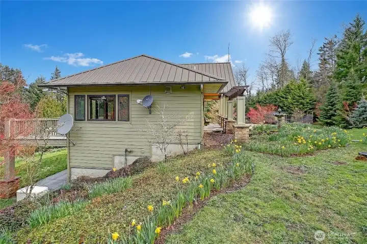 Custom-built Northwest retreat on nearly 3 park-like acres with professional landscaping and gated entry. Designed with timeless style and durable finishes including radiant heated tile floors and a metal roof. The main-level primary suite offers a walk-in closet, private ensuite & access to the SW facing deck. The living room features vaulted ceilings, a cozy gas fireplace, and high-end Anderson windows and doors that flood the space with natural light. The open-concept daylight basement provides tons of flexibility with a full bath, laundry, and open living space currently used as an additinoal primary suite and bonus area, plus walk-out patio access. Newly upgraded tankless water heater with 5-year warranty and a Generac whole-home generator for year round comfort. Custom blinds, solid surface countertops, fenced garden area with shed, and a fully paved driveway complete this exceptional property. Ideally located just minutes from two state parks and a boat launch. 3-bedroom septic.