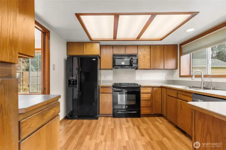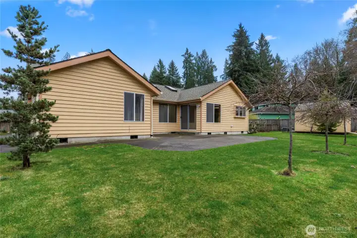 Welcome to Goldcreek! A highly sought after neighborhood in Tumwater. Minutes from I5, schools & shopping. This property is located within a quiet culdesac which boarders the community walking tract along the large forested greenbelt providing you with some extra privacy and serenity. Your landscaped, fully fenced yard with a newer shed, garden space, and large patio accessible off the kitchen and primary room gives you the perfect set up for outdoor hobbies. As you enter the home your formal living room with a gas fireplace is just to your left, following into one of two dining areas which leads to your fully equipped kitchen. From there you’ll find the second dining area, along with the second living area leading you to the laundry room and right into the garage. As you continue down the wide hallway you’ll find a full bathroom, and two bedrooms along with the primary and its attached bathroom with a walk in closet. All on one level, no stairs to climb! The vaulted ceilings and skylights in this home makes for a bright, breathable living space. Central A/C with insulated ducts provides year round comfort no matter the weather outside while your 50 Yr. roof helps protect that comfort and peace of mind. The curb appeal is outstanding with this one. Fully landscaped, and large functional driveway for additional parking. Looking for a quiet, walkable, established neighborhood with larger lots in the Tumwater School District? This place is for you!
