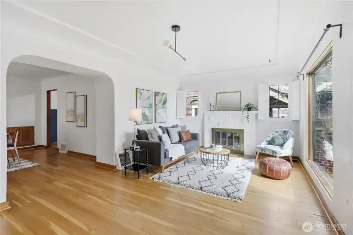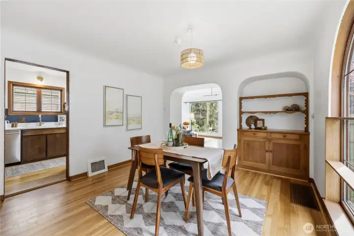 Charm and character abound in this 4 bedroom dollhouse! Easy commute by foot or ferry, just 1/2 block from PSNS gate and 4 minutes to the Seattle ferry terminal! 1930's features such as built-in storage, glass doorknobs, coved ceilings, built-in buffet, laundry chute, extensive hardwoods and arched windows will speak to your soul. Practical upgrades include remodeled bathrooms (with radiant floors!), a beautiful 7 burner range and updated Pex plumbing throughout! Convenient alley accesses a detached 1 car garage + parking area and the sweet courtyard patio is ready for memory making. Plenty of space, super location and the most darling place...don't miss this special home!