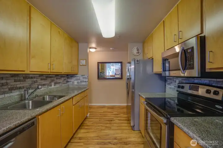 You asked for it. ADA approved. Main level accessible condo w/granite counters. Wide hallways and roll in showers. Even handicapped parking ramps. Covered decks for barbeque. Laminate flooring and corner Fireplace in Living room. Covered bar b que area outside Living Room for easy access. This unit is unique because of the accessible hallways and entrances. Unit is in very back and very private part of the complex.