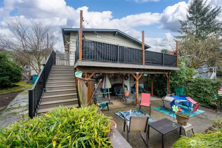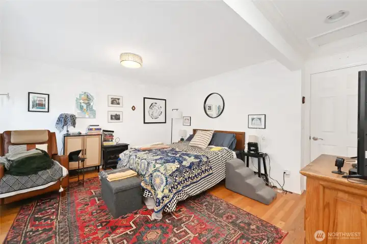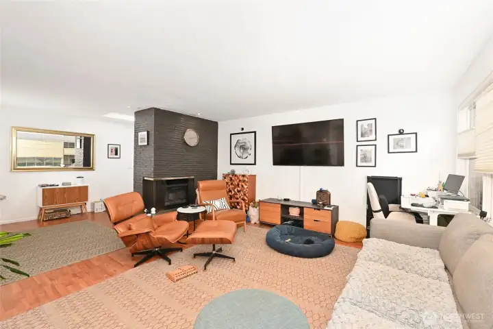 A lovingly cared-for mid-century home in the heart of View Ridge, this property has been stewarded by the same family for three generations. Originally purchased in the mid-1970s and has been used continually as an extended-family MIL for more than four decades. A valuable investment opportunity! Inside, a bright full-length wall of windows spans the living and dining rooms, filling the circular floor plan with natural light. An impressive Roman-brick, room-dividing fireplace creates the foyer and anchors the main level, complemented by recent flooring upgrades. The primary suite features a generous soaking tub, and both levels open to exceptional indoor-outdoor living: the upper floor boasts a high-quality, recently rebuilt west-facing deck, while the lower level, the full MIL with kitchen, offers a full-length covered patio at grade with the level backyard. The new deck above creates a dry, usable outdoor space below—ideal for year-round enjoyment.The grounds include mature plantings, established gardens, and ample room for vegetables or expansion, with level yard space in both the front and back.Location is unbeatable. Bryant Park and PCC sit just across the street, with excellent schools & cafés, all nearby. Minutes to Children’s, Magnuson, the UW, and the Burke-Gilman, this home offers convenience without sacrificing neighborhood charm. A well-loved, 3-generation View Ridge classic—ready to welcome its next stewards.