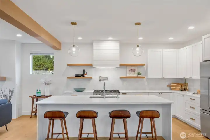 Sophisticated and sunfilled, this south facing West Seattle home showcases elevated finishes and a thoughtfully designed open floorplan filled with natural light from expansive windows. The main level flows seamlessly between the kitchen, dining, and living areas, ideal for both entertaining and everyday living. Upstairs features a spa inspired primary suite along with two additional generously sized bedrooms to accommodate a variety of needs. The lower level offers a versatile bonus space that opens to the landscaped backyard, a den and a full bedroom and bath, perfect for guests or extended stays. Complete with an oversized two car garage and located just minutes to the West Seattle Bridge, beaches, parks, and beloved neighborhood cafés and shops, this home offers the perfect blend of comfort, style, and convenience.