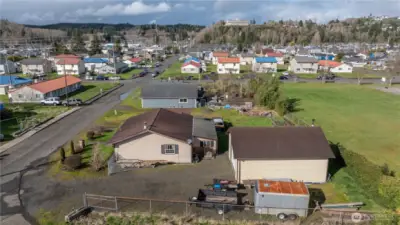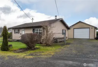 Situated at the end of a quiet street with a park bordering the rear of the property, this well-maintained home offers a hard-to-find combination of comfortable living space and exceptional shop amenities on an oversized 11,500 sq ft lot. A spacious 32x24 shop features a 10-ft electronic door, air filtration system, and overhead storage, providing excellent space for projects, hobbies, or workspace needs, along with a detached one-car garage for additional storage, sink, and functionality.Currently configured as a 1-bedroom, the home was originally designed as a 2-bedroom, with the former second bedroom now used as an office/laundry room and potential to convert back if desired. The custom-remodeled kitchen showcases granite countertops, beautiful cabinetry, stainless steel appliances, a garden window, and attractive tile work with upgraded lighting. Tile flooring runs through the entry, dining area, and kitchen, while comfortable carpeting extends through the main living spaces. Built-in shelving enhances storage in the hall and bedroom closets, complemented by a large walk-in pantry off the dining room.The living room features a Quadra-Fire free-standing wood stove, and the bathroom includes a relaxing Jacuzzi tub. A separate sunroom provides flexible space ideal for a greenhouse, hobby area, or relaxing retreat, and includes its own sink for added convenience -- perfect for cleaning Razor clams after a dig. Speaking of which, the beaches are approx. 30 minutes away.