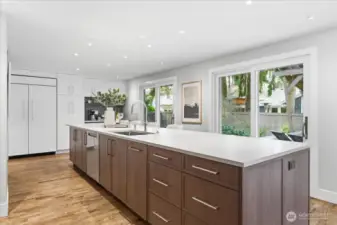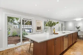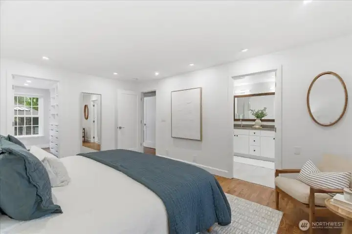 Stunning classic home on a quiet cul-de-sac in the heart of Mercer Island. A comprehensive architect-designed remodel in collaboration with Mutuus Studio, paired with professionally designed outdoor spaces by WEdesign Landscape Architects, makes this home a rare find. The dream kitchen anchors the home with a 15-foot honed quartz island, AGA range, Sub-Zero refrigerator, Miele speed oven, and built-in coffee station. Three sets of sliders open to the backyard, blending indoor and outdoor living while filling the home with natural light. Updates include all new windows, walnut-stained hardwoods, designer paint, and Ann Sacks tile accents. Enjoy an entertainment-sized deck with partial cover, a large flat lawn, and a fully fenced yard for privacy and play. Upstairs offers five bedrooms, including an expansive primary suite with walk-in closet and large shower. The basement features a spacious yet cozy family room with gas fireplace, plus a half bath and laundry. Additional highlights include a two-car garage with built-in storage and an attached workshop. Just a short stroll to Starbucks, QFC, and local restaurants; 10 minutes to Pioneer Park for off-leash dog adventures; and 20 minutes via a hidden path to Groveland Beach for summer swims or watching the Blue Angels.