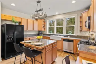 Welcome to this beautiful home located in the Foster area of Tukwila. This home is positioned to offer fantastic privacy! Sitting up at the end of a road, it feels like a private oasis. The Main Level offers a grand entryway with tall ceilings. The comfortable, open concept floor plan has a peaceful feeling as you look out to the trees through the large windows in the Kitchen, which has wonderful counter space, including an island. There is a formal Dining Room and a Living Room with a gas fireplace and built-in bookshelves. The Living Room opens to a new deck through the French doors. There is also an office on the Main Level. Upstairs is the spacious Primary Suite, featuring vaulted ceilings, walk-in closets, and a luxurious Primary Bathroom. 2 other good-sized bedrooms, a laundry room, and a full Bathroom are also on the second floor. The lower level has the fourth bedroom, a Rec Room, a full Bath, and a second Laundry/Utility room with a large sink and a butcher block counter. This level has its own entrance. It could make a nice ADU. Some recent updates include roof and gutter cleaning. New carpet on the upper floor and stairs. New LVP flooring on the entire main floor, bath, and study. Newer Furnace and hot water tank. New back patio, New front porch, New front stairs, Side decking and stairs, Utility room added to lower level with washer and dryer. This location is extremely convenient, providing easy access to the freeways, Southcenter Mall, and more!