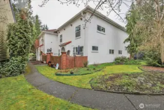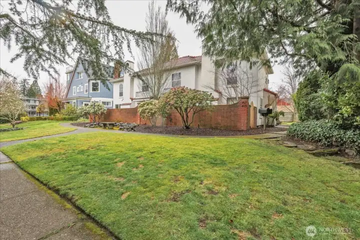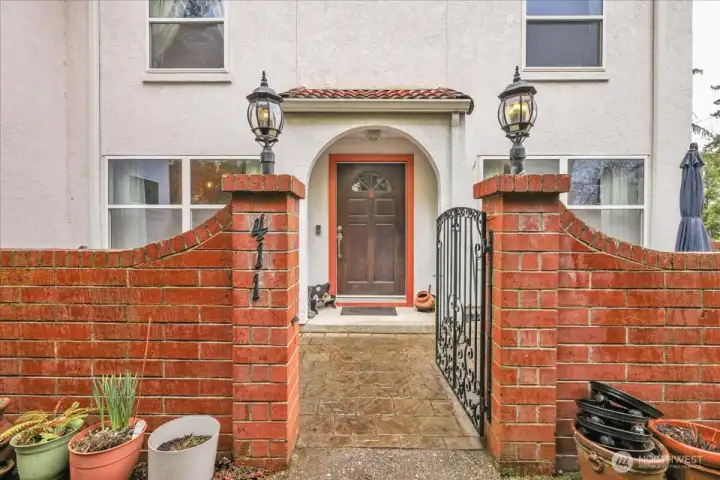 Rarely available in the Spanish Villa Condominiums! This spacious two-story condo lives like a single-family home in Tacoma's coveted North End. Tucked behind a private brick-walled courtyard off N Yakima, you'll find over 1,000 sq ft of character and charm at a price point that's hard to beat in this neighborhood. The main level features a generous living room with a working wood-burning fireplace and sculptural stucco surround, rich hardwood floors, and a bright dining area flowing into a well-equipped kitchen with granite countertops, white cabinetry, and stainless steel appliances. Large windows bring in great natural light while maintaining privacy. A half bath and wrought iron staircase complete the main floor. Upstairs offers two spacious bedrooms with ceiling fans and an updated full bathroom. In-unit LG front-load washer and dryer for added convenience. Outside, enjoy a private brick-enclosed patio — perfect for relaxing or entertaining. A massive detached garage off the alley provides generous parking and storage. Classic Mediterranean architecture with white stucco, red clay tile roof, arched doorways, and stained glass accents give this home undeniable curb appeal. Mature landscaping surrounds the property. Close to Stadium District dining, the waterfront, and downtown Tacoma. Don't miss this rare opportunity to get into the Spanish Villas!