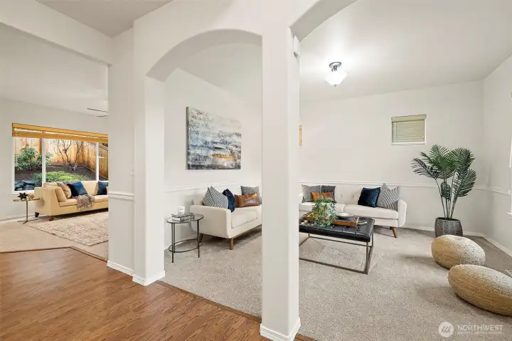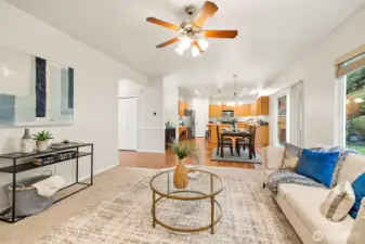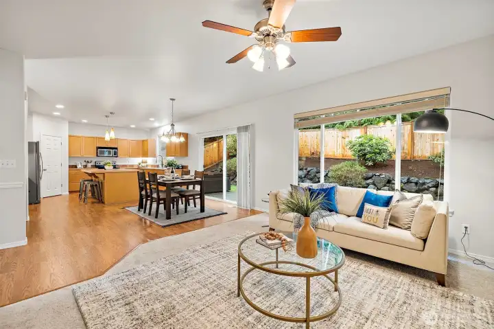WOW! this turn-key & beautifully refreshed home is tucked away in a quiet corner of Kent's BEST neighborhood! offering greenbelt privacy & no through-traffic, this gem is perfect for gathering + entertaining & offers the perfect balance of peaceful living and unbeatable convenience! It's just 2 minutes from Hwy 18 & moments from Lake Meridian, Covington shopping, dining, and Costco. Inside, the home is bright, fresh, and truly move-in ready with BRAND NEW interior paint, BRAND NEW carpet throughout & updated SS appliances! Other Major upgrades include BRAND NEW exterior paint, NEW in 2021 furnace with central A/C, and a NEW back patio with hot tub + poured concrete walkways wrapping around the house. Everyone raves about the massive kitchen, sprawling primary suite w/ 5-piece master bath and the oversized garage w/ workshop space! There's a massive guest bdrm upstairs that could easily double as a bonus room & the flex bdrm/office downstairs offers immense privacy. DONT MISS THIS ONE!