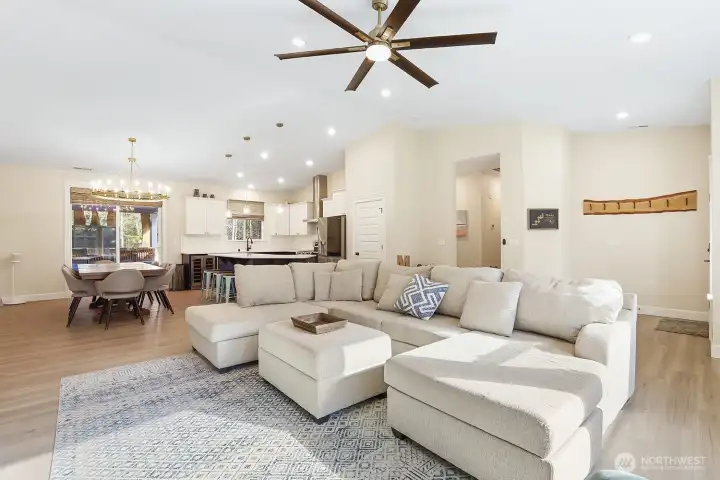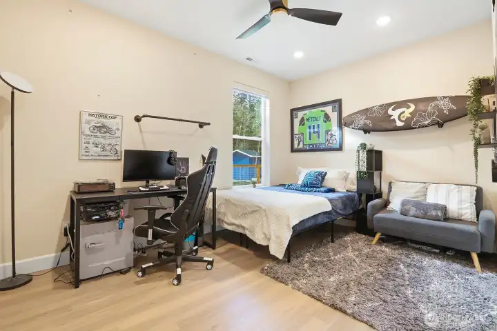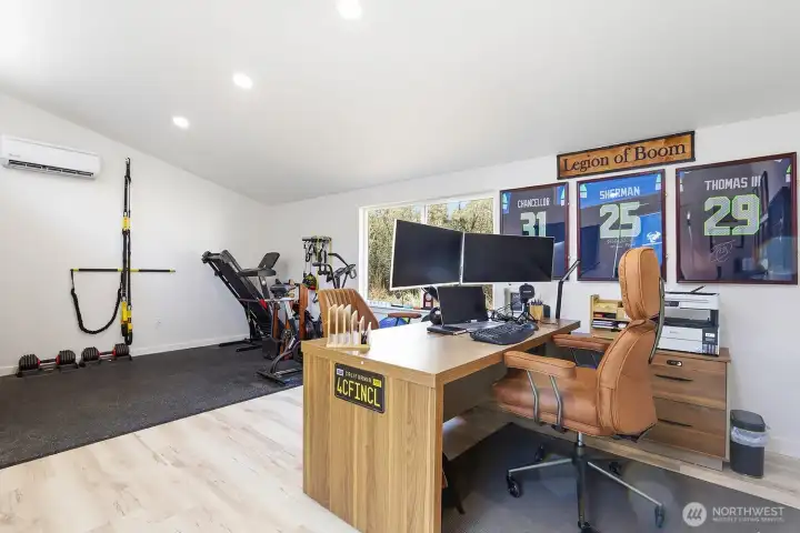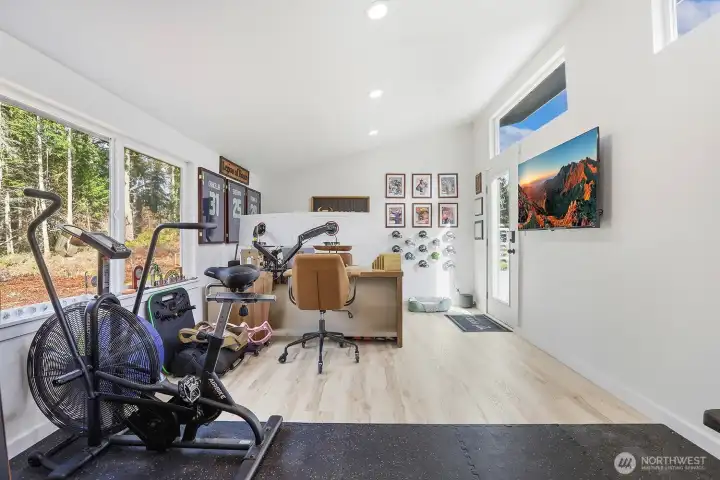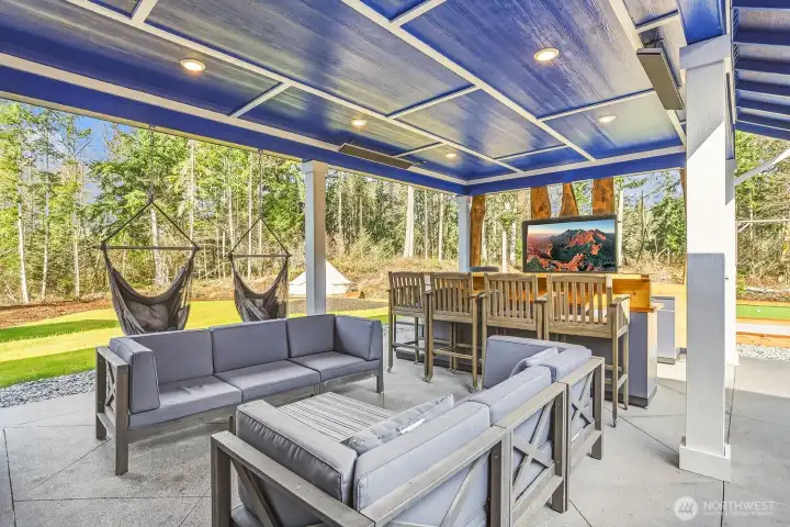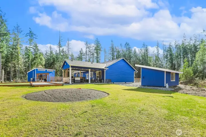 10 private acres in Clinton with built-in recreation—why vacation when you can stay home? This custom property blends comfort, flexibility & unforgettable outdoor living. The grounds are an entertainer’s dream: an extra-large covered BBQ & bar pavilion with gorgeous live-edge counters, built-in prep space & overhead lighting sets the stage for epic gatherings. Enjoy friendly competition on your full bocce ball court or practice your short game on the private putt-putt course. A huge patio with firepit invites evenings under the stars, while a platform yurt creates a magical space for summer guests. The acreage is potentially subdividable, offering future possibilities while you enjoy the privacy of towering trees, open space & abundant RV parking. Additional versatility includes a detached studio ADU with sleeping loft & ¾ bath (easy to add a kitchenette) and a fully insulated outbuilding with power—perfect as a gym, studio or office. a generous garden shed stores all your yard goodies. Inside the main home, you’ll find 4 generous bedrooms, including relaxing primary bedroom with ensuite bath and sliders to your patio and hot tub. Luxury vinyl flooring throughout & a gourmet chef’s kitchen with quartz counters designed for gathering. A whole-property water filtration system & generator wiring add comfort and peace of mind. RV and boat parking abound. A rare and unique opportunity where nature, recreation & flexible living come together on beautiful South Whidbey.