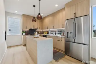 Experience elevated coastal living just steps from the shoreline at 2626A 58th Ave SW in Seattle’s Alki Beach neighborhood. This exceptional new construction home offers 2 bedrooms plus a flexible office/den, ideal for a guest room, workspace, or creative studio, along with 2 bathrooms, a dedicated laundry room, & a private ensuite primary suite. Designed with a distinctive chic beach aesthetic, the home showcases a statement kitchen featuring custom finishes, modern cabinetry, designer fixtures, and thoughtful layout optimized for both everyday living and entertaining. Don't miss the gorgeous light fixtures throughout the home! Enjoy close proximity to neighborhood destinations including Alki Beach Park, waterfront walking & biking paths, pickleball courts, and local dining such as Harry’s Beach House, all just moments away. Outdoor living is equally compelling with private exterior space and a rooftop deck offering panoramic Puget Sound and mountain views. The elevated vantage point provides a dynamic setting to watch ferry traffic, sunsets, and year-round waterfront activity. Additional highlights include a private parking space with electrical for future EV charging, air conditioning and a location that blends beach access with convenient connectivity to the greater Seattle area. A rare opportunity to own a thoughtfully designed new construction home near Alki Beach with rooftop water views, flexible living space, and dedicated parking.