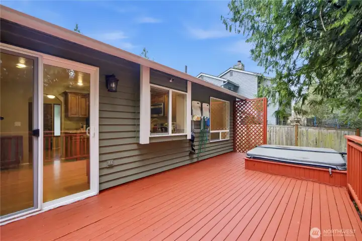 Sought-after beautifully maintained Summer Ridge 4-bedroom home featuring a spacious primary suite with walk-in closet upstairs and a convenient main-level bedroom—ideal for guests or multi-generational living. The updated kitchen showcases granite countertops and rich cherry soft-close cabinetry, complemented by matching finishes in the bathrooms for a cohesive, upscale feel. Sunlit formal living and dining rooms create an inviting first impression, while the cozy family room with gas fireplace offers the perfect place to unwind. Newly installed A/C ensures comfort all summer long. Step outside to a private backyard retreat with an expansive entertainment deck overlooking a serene greenbelt and a hot tub spa—perfect for relaxing evenings or memorable gatherings. The low-maintenance yard means more enjoyment and less upkeep. This home is equipped with a connected standby generator, providing reliable backup power and year-round peace of mind. Ideally located near parks, top-rated schools, and everyday amenities. Conveniently located with an easy commute to major employers and everyday essentials. Just 20 minutes to Downtown Bellevue, 15 minutes to Microsoft headquarters, and 10 minutes to Costco and Trader Joe’s. Enjoy low HOA dues and a vibrant community with HOA-organized events throughout the year, including Halloween, Easter, Christmas, and more. No RTA tax adds even more value. This pre-inspected home is truly move-in ready.