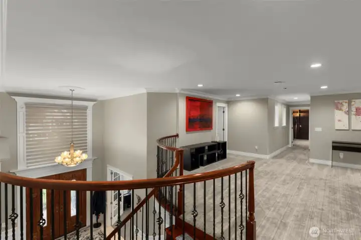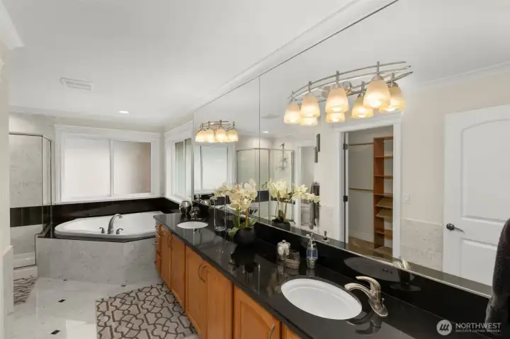 Exceptional Kirkland Luxury Home — Elegance Meets Everyday Living Welcome to this stunning 5-bedroom + Den masterpiece where refined craftsmanship, comfortable living, and smart-home technology come together seamlessly. A striking marble entryway sets an elegant tone, complemented by a stucco and fiber cement exterior surrounded by lush, fully landscaped grounds with a sprinkler system. Soaring cathedral ceilings, a beautifully rounded grand staircase, and a loft overlooking the Great Room create an unforgettable first impression. Rich Brazilian hardwood floors and extensive custom millwork flow warmly throughout. Formal Living and Dining rooms are a feast for the eyes, while the spacious Great Room is ideal for relaxed entertaining. The chef’s dream kitchen boasts a center island, alder wood cabinetry, granite slab counters, and premium Thermador/Bosch appliances. Two luxurious Master Suites - one on each level - offer outstanding flexibility for multi-generational living or guest accommodations. Step outside to a generous covered slate deck and expansive concrete patio, perfect for year-round entertaining. Central vac, A/C, and security system included. Smart-home enabled. Minutes to Evergreen Hospital, Totem Lake Shopping, top-rated schools, and beautiful parks. This home truly has it all.