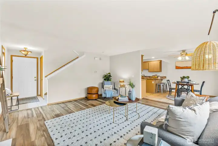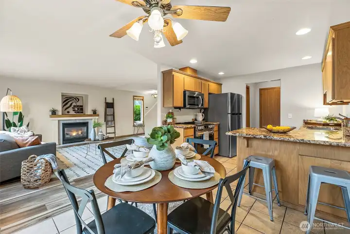 Nestled in Tacoma’s sought-after Briarwood community, this meticulously maintained 3-bedroom, 2.25-bath home offers a spacious main floor featuring a kitchen, inviting living room with gas fireplace, utility room, and sliding glass doors leading to a cozy private patio—ideal for both relaxation and entertaining. The upper level includes a generous primary suite with dual closets and private bath, complemented by two additional bedrooms and a bathroom. Recent updates include new carpet and paint throughout, new dishwasher, range, and microwave. Low-maintenance living is provided by the HOA, which covers yard care. Strategically positioned near I-5 with easy access to shopping, dining, JBLM, schools, and more, this residence delivers the perfect blend of comfort, convenience, and community.