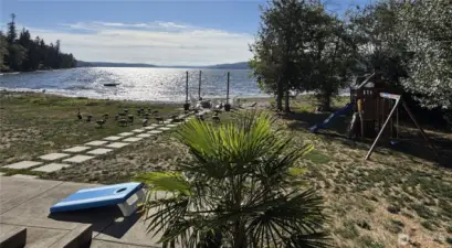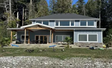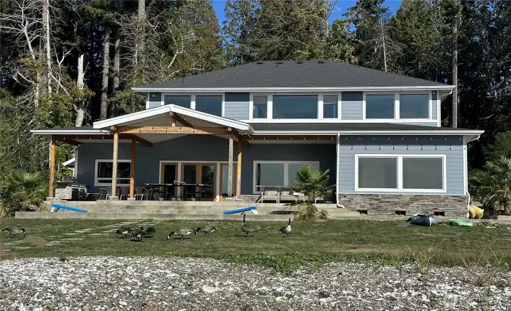 Must See!! Custom-built No Bank Waterfront 2-story house with Olympic Mountain and Hood Canal views. Large Kitchen with granite countertops, stainless steel appliances, huge island, oversized Butlers Pantry & Wet Bar nearby. Main Level Master Suite with amazing views. Open and bright living room with cozy fireplace. Hardwood floors throughout. 2nd level: 2 spacious bedrooms w/full baths, Bonus/office Room & Rec room. Massive covered back patio perfect for entertaining. 65' of no bank waterfront in your backyard allows you to go swimming, paddleboarding, canoeing, harvesting clams and oysters. The fire pit is great for marshmallowing.