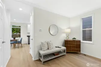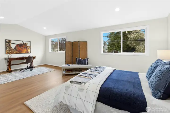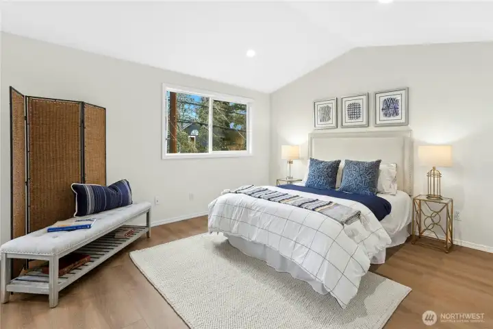 Quiet. Private. Aesthetically Reborn. Better still, the vibrancy of Green Lake and Phinney Ridge are steps away from this button-cute bungalow! Upon approach you'll note the artful landscaping, yet the real treats tempt from within: Brand new, honey-kissed plank flooring plays nice with fresh, on-point designer palette and glorious natural light thanks to ideal E/W orientation, all anchored by a cozy gas fireplace. The flow is effortless to the newly realized Chef's center with sleek quartz, shaker cabinetry, stylish pulls and sparkling stainless opening wide to dining with views onto the inspired entertainer's courtyard. Both bathrooms are a study in timeless good taste, but the real surprise is the sheer scale of both upper guest suites (each easily serving double-duty as work/respite zones). The storage offered here simply cannot be overstated (you'll lose count of the closets...several walk-ins, too!). Rarer still, an extra deep attached garage. From here, the commute to Downtown and beyond is a total breeze. This is home!