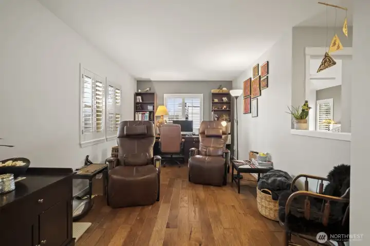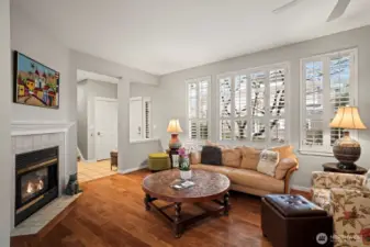 Sought after Windwood Village at Bella Bottega! This detached townhome lives like a single-family home—without the exterior maintenance—walk to shops, restaurants the movie theater and just steps to the Sammamish River Trail. Offering 1,866* sq ft, this home features 3 bedrooms plus a flexible bonus space ideal for a home office and/or media room. A charming Craftsman exterior and covered front porch create a warm welcome. Inside, the tiled foyer opens to a bright great room with engineered hardwood floors, ceiling fan, cozy gas fireplace, transom and shuttered windows. The open layout flows into the dining area and kitchen with slab granite counters, warm wood cabinetry, tiled full height backsplash, breakfast bar, pantry and stainless steel appliances including a new dishwasher, recessed refrigerator and gas range/oven. Sliding doors off the kitchen lead to a private backyard patio, perfect for morning coffee or afternoon respite. Upstairs includes three bedrooms, two updated baths, and a bonus/flex space. The vaulted primary suite offers a ceiling fan and an updated five-piece bath with soaking tub, tiled shower, 12x24 tile floors, and dual vanities with floating vessel sinks. 2 additional bedrooms—one with a queen sized Murphy bed—share a full bath also updated with new lighting and vessel sink. Highlights include: new furnace (2024), 2-car garage with overhead storage, 9-ft ceilings, white shutters on all windows and engineered hardwood floors throughout. Pre-inspected!