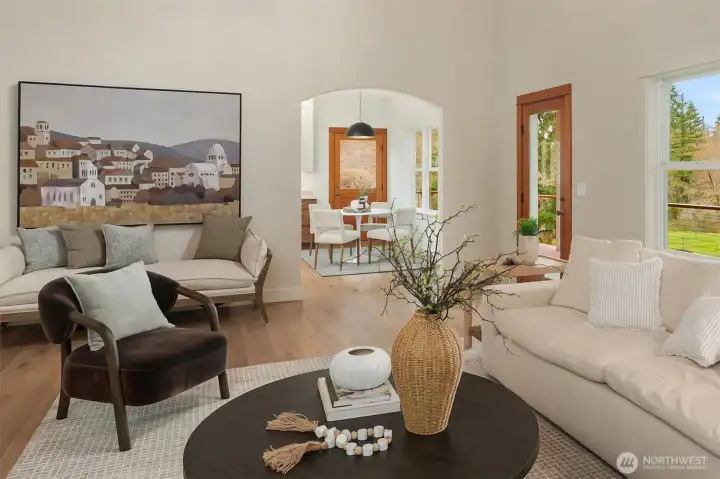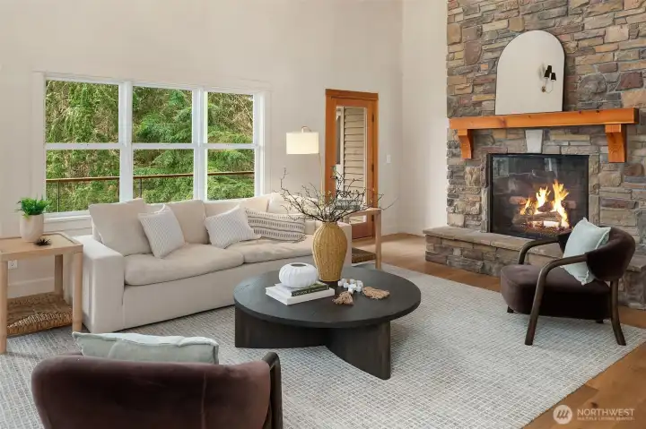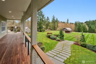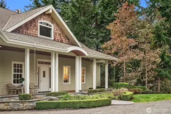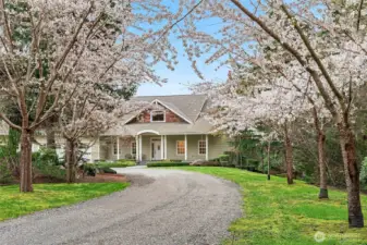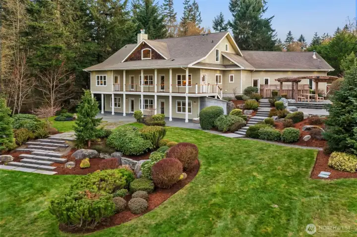 Never before on the market, this grand Vashon Island estate offers a rare combination of privacy, beauty, and scale on 10 fully fenced acres with private trail connections to Island Center Forest. Custom-built in 2006 and lightly lived in, the home features 5 bedrooms, 3.5 baths, and expansive spaces designed for luxury living, entertaining, and hobbies. The new designer kitchen is the showpiece, with custom Canyon Creek cabinetry, Taj Mahal quartz counters, concealed hood, natural oak island, pantry with floor-to-ceiling built-ins, and designer lighting. Grand vaulted ceilings, fumed oak hardwood floors, and a natural stone fireplace elevate the main living spaces, while the media room with wet bar, billiard room, theater room, and dedicated gym add remarkable flexibility. The main floor primary suite offers exterior access, walk-in closet, and en suite bath. Outdoors, enjoy Ipe decks, mature gardens, greenhouse, irrigated grounds, orchard, and outdoor fireplace and dining loggia draped in wisteria and jasmine. A cherry tree-lined circular drive, vistas over manicured lawns and forest, and extreme privacy complete the setting. Two substantial outbuildings include a 2496 sqft 4 bay garage and 1824 sqft barn with water and power, ideal for equestrian use, collector cars, RV and boat storage, workshop space, or farm utility. An exceptional systems package includes solar, generator, AC, radiant heat, private well, and air filtration system. A truly one-of-a-kind Vashon offering.