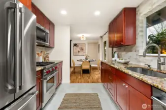 Welcome home to this stunning mid-century gem, perfectly situated on a quiet cul-de-sac just moments from downtown Bothell. The spacious living and dining areas flow seamlessly into a newly renovated chef’s kitchen, complete with high-end appliances tailored for entertaining. Primary suite features vaulted ceilings, updated 3/4 bath, and additional bedroom just across the hall. The main floor features two bedrooms and a designer full bath. Private, fully fenced backyard, featuring dedicated garden space and a detached 192 SF outbuilding equipped with heating and AC - the perfect office or studio. Located in the award winning Northshore School District and pre-inspected for a turn key experience!