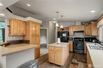 Beautiful 3 bedroom 1.75 bath Palm Harbor home nestled on 1.26 ac. This quality home features a welcoming front porch with entry to a large living room with walls of windows and vaulted ceilings with architectural detail. Dining room off of kitchen provides plenty of space for entertaining and lots of natural light. Kitchen was designed with the chef in mind and features an abundance of cabinets, oodles of counter space, eat-in bar, an island, huge window for natural light and recessed lighting. Plenty of room for multiple cooks in this kitchen! Utility room has an outside exit that leads to the backyard. Roomy main suite features bath with double sinks, large shower and closet. Home features solar panels to help with the utility bills and heat pump for year round comfort. Outside you'll enjoy the pastoral setting with plenty of room for the gardener with fruit trees and evergreens and storage shed for all the tools. Detached 2 car garage and a well-planned circular driveway to accommodate extra parking with room for RV/boat or?? Property sits at the end of the road for privacy and peace. Located just minutes to I-5 for an easy commute north or south. What a hidden gem!!