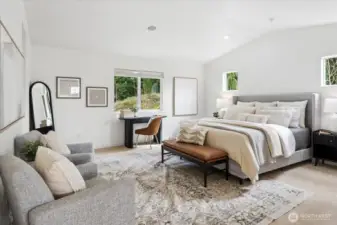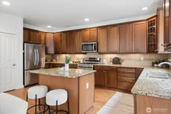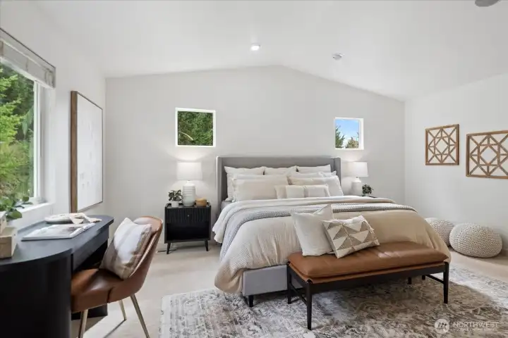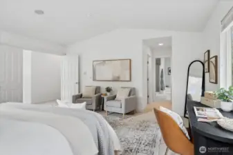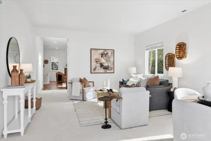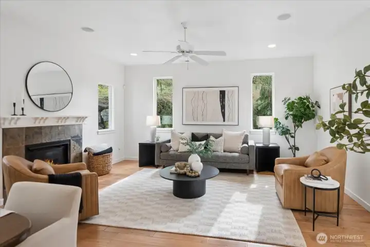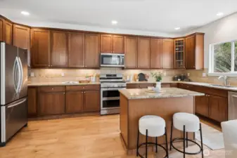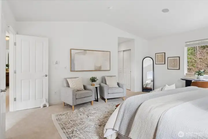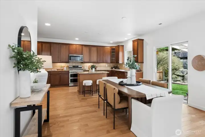 Positioned directly across from the community park, this beautifully updated home captures territorial views in front and a secluded private oasis in back—an exceptional combination of setting and lifestyle. With freshly buffed hardwood floors and new carpet throughout, this home feels refreshed, bright, and welcoming from the moment you step inside. The main floor impresses with dramatic high ceilings and an exceptional kitchen featuring abundant storage, generous prep space, and a highly functional layout. The spacious great room and informal dining area effortlessly accommodate both everyday living and special gatherings—ideal for game days, holidays, and everything in between. Upstairs, thoughtful design continues. All bedrooms feature walk-in closets. The conveniently located laundry room adds ease to daily life, and the expansive bonus room provides endless possibilities for work, play, or relaxation. The primary suite, accessed through elegant French doors, offers vaulted ceilings, exceptional privacy, abundant natural light, double closets, and a spa-inspired bathroom. Step outside to your backyard sanctuary—a peaceful, private retreat with a covered patio perfect for year-round enjoyment. The generous side yard offers even more usable outdoor space, ideal for games, gatherings, or room for pets to roam. Great access to Hwy 9, Centennial Trail and Getchell trail. Just 3 miles west of I-5. New furnace! Welcome home!