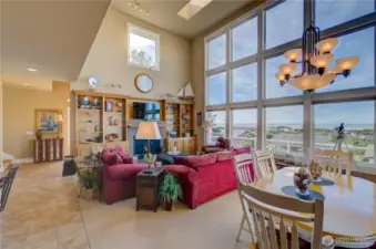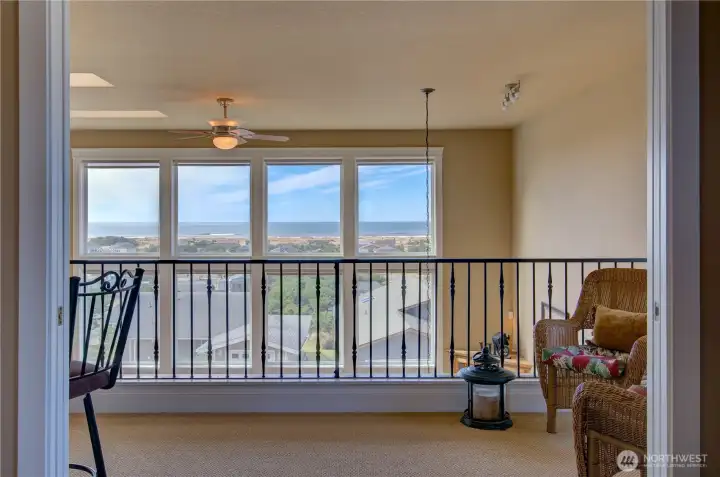 Romantic Pacific Ocean fully furnished transitional style home with 180 degree view , which has forever captured the Pacific because of a sensational two story window facing West and another window facing North . In addition a very high ceiling , with it’s three skylights adds to the immediately inspiring celestial atmosphere carried throughout the whole house. The home is perfectly positioned on a rise , and located on the finest view street in Surfside. A Romeo and Juliet balcony running the width of the interior , with its wrought iron balustrade is real artistry , all created by noted Peninsula designer Thomas Treat! Its charm includes a main suite , with an en-suite bath and the wonderful opportunity to lie in bed and look directly out to the Pacific! There’s a “ three seasoned” cedar back porch which has an additional small back deck to BBQ , and is located on the Southeast side of the home . This is where you can enjoy the territorial views of the iconic Northwest! The main deck facing the Pacific is ready for sunny days and sunsets! The lower level could be a separate guest suite with its own separate entry. A few minutes walk to the ocean, but far enough away from the constant blowing sandy wind. This Surfside estate is ready to move into as it even includes everything you’d need in the kitchen to cook and entertain.
