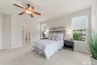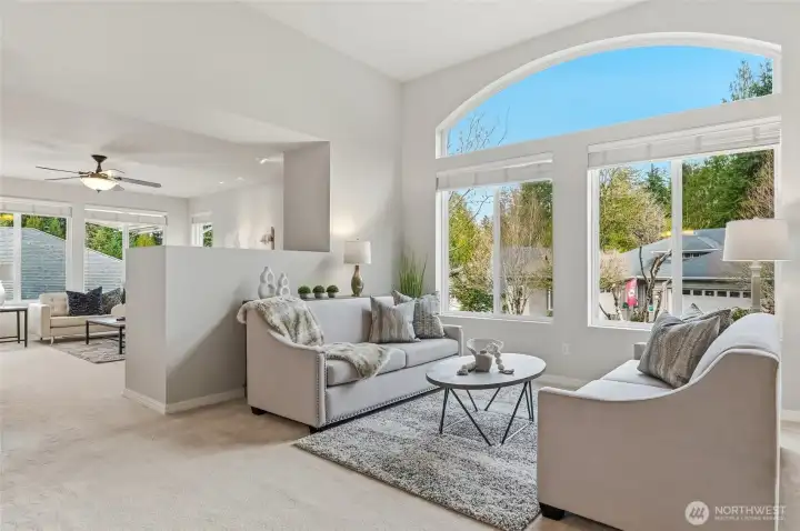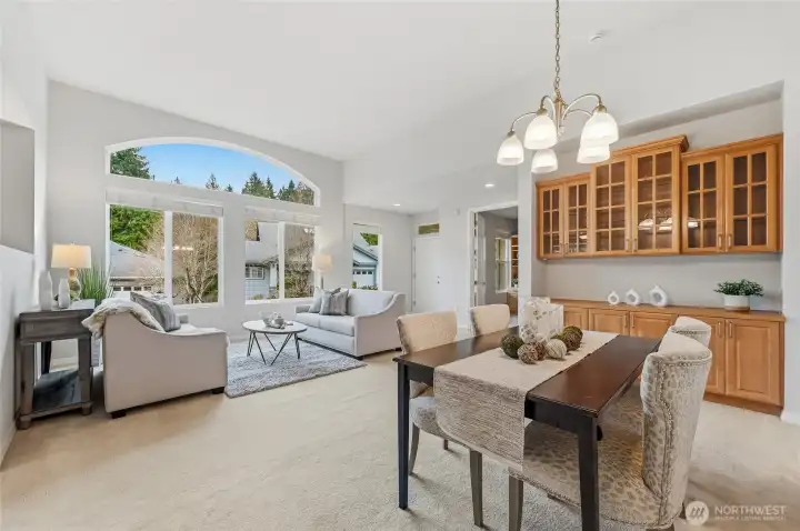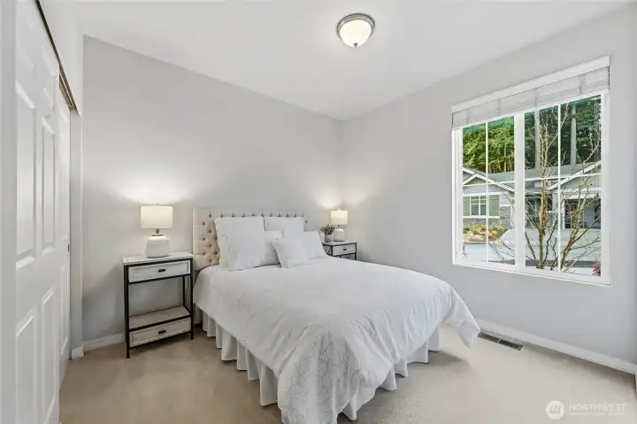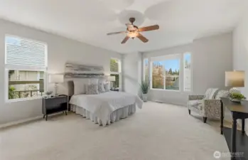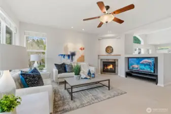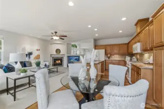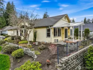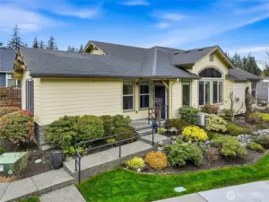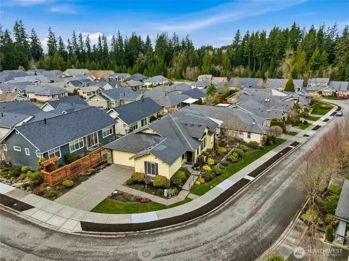 Live the 55+ Trilogy resort lifestyle in this beautiful, one level Vancouver plan home that showcases the perfect balance of privacy and space. Set on a beautiful corner lot, above the street, you’ll enjoy light filled spaces and big sky views. Built for entertaining with a large dining room w/a beautiful built-in buffet & display cabinet and living room that are open to the great room so there is plenty of room to host holiday dinners and neighborhood get-togethers. Kitchen with ample cabinetry, large island w/a 2nd row of cabinets below, pendant lighting, a double pantry and breakfast nook. Cozy gas fireplace & large TV niche in the family room. Step out to the oversized patio, w/built-in seating and a clear cover where you can relax with friends and BBQ year-round. Carefree living with front & side yard maintained by HOA. The primary bedroom easily accommodates a king-sized bed and full-sized furniture. The en-suite bath has a dual sink vanity, step-in shower, private toilet room and a walk-in closet with organizers. The office has a built-in Murphy bed/desk combo and a wall of bookcases and storage. Second bedroom is adjacent to the full bath provides your guests with their own retreat. Laundry room has a utility sink. The garage has a work bench and overhead storage. Room to park 4 cars in the level driveway! The PNW’s flagship 55+ community w/a beautiful clubhouse, fitness center, indoor pool & walking track, pickleball & tennis courts and walking trails. Pre-inspected