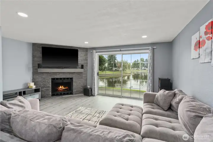 Back on Market Buyers got cold feet no fault of Sellers. Rare available Lakes community unit on lakeside with one of the best lake views. The home has been completely updated, control all the newer Samsung appliances via smart phone.The touch sensitive lighting throughout the home can set the mood. You will love the Primary Bedrooms vaulted ceiling with stunning views of the lake below.The primary bath has a beautiful walk-in shower, heated mirror with a bluetooth connected ceiling fan to play your favorite tunes while showering.The 2nd Bedroom is also very spacious with vaulted ceilings and updated bath. Sit on the patio relax watching eagles fish and wild life such as otter swim. Home is 5 minutes away from I-5 and 167 great for commuters.New electrical panel installed 3/8/2026 HOA to repair drywall prior to closing. Hurry on out!