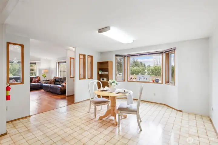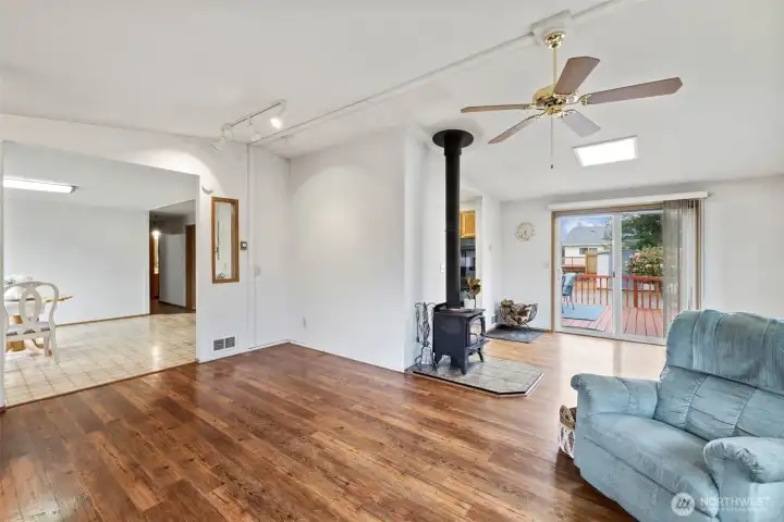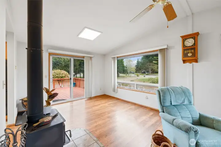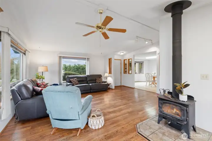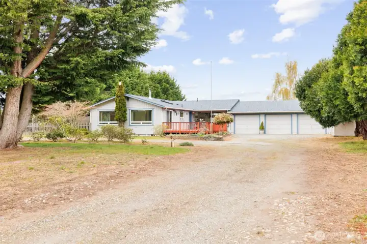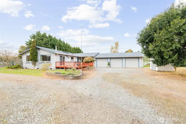 Tucked away in desirable Sequim, this charming 2 bed, 2 bath home sits on 1.04 acres with beautiful mountain views and a peaceful setting. Offering 1,612 sq ft, this well-maintained home features a spacious, light-filled living room with a cozy wood stove and a functional layout with dining room off the kitchen. The kitchen includes a double oven, triple sink, and newer refrigerator, perfect for everyday living and entertaining. A dedicated laundry room with pantry adds convenience. Step outside to enjoy the large deck, garden space, and fruit tree orchard. The impressive 936 sq ft garage offers flexibility as a 3-car garage or 2-car with shop space, connected to the home by a covered breezeway. Circular driveway provides easy access and ample parking. With great location, privacy, and room to spread out, this property offers the best of country living close to town.