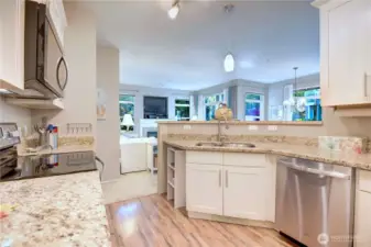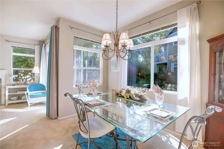 Rare Vintage condo! Quiet natural setting; lush wraparound greenbelt; SE exposure; totally remodeled kitchen. 3 bedrooms + flex space for den or ...; 2 full baths; main floor, no steps; direct access to garage.Great room boasts open dining, living, breakfast bar and kitchen. Spacious layout, 9’-tall ceilings, abundant natural light. Fully furnished turn-key option. New premium carpet included. Economical mini-split heating and cooling; gas fireplace and water heater work if power goes out; laundry room; storage. Community amenities: large park, plenty of guest parking and clubhouse with entertaining areas, hot tub, exercise room and pool. HOA dues include earthquake insurance, water and sewer. Enjoy this one owner ‘home like’ condo for relaxing, day-to-day living and entertaining.