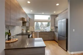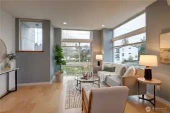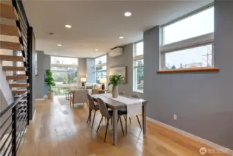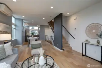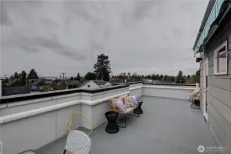 Trifecta! Gorgeous home, fabulous location, and the very rare opportunity of a zone-approved live/work home with incredible street presence. Use the street-level ensuite as an office, spa, chiropractic office, or more, or as an ensuite for guests. Upstairs is a luxurious open-plan living and dining area, a half bath, and a true chef’s kitchen, while the upper floor offers two additional bedrooms and a full bath. Top it off with a corner roof-top deck with sweeping views of the Puget Sound, Mt. Rainier, and the Olympics. Relax in the sun with a cool beverage from the rooftop wet bar or shelter under the electric awning on those misty days. You really can have it all! Inside, mini-splits offer year-round A/C and energy-efficient heating, heated floors make winter easy, and the tankless water heater provides endless hot water. Short walk to a variety of shops, restaurants, cafes, and so much more. If you must drive, commuting is a breeze from here, and there is convenient off-street parking in the rear.