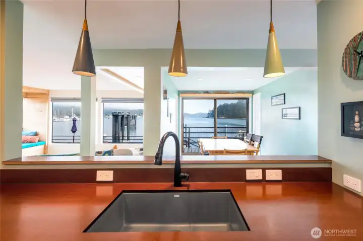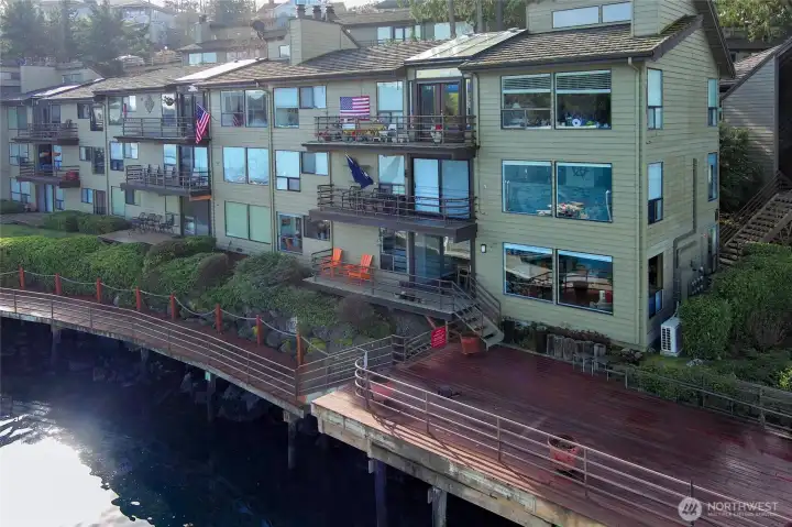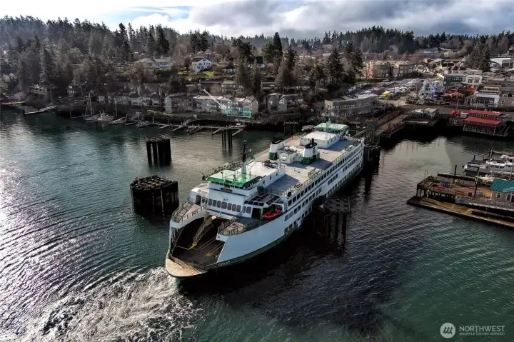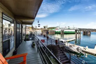 Opportunity to live in the heart of downtown Friday Harbor in the desirable Cannery Village Condominiums. Just steps from the ferry, this ground-level end unit offers the ultimate in convenience—step off the ferry and walk a few steps to your front door. Restaurants, shops, and galleries are all within easy walking distance. Set above a private marina, the condo enjoys vibrant waterfront views where ferries, boats, and local wildlife create an ever-changing harbor scene. Launch your kayak nearby and explore the shoreline around Brown Island, Friday Harbor Labs, and the surrounding marinas.Recently updated, the condo blends modern comfort with thoughtful, functional improvements. The layout includes two bedrooms, a living, dining area, and a coffee/mini bar perfect for relaxed island mornings. The primary bedroom features an ensuite bath, and windows throughout the home capture water views and natural light. A private deck off the dining room provides a cozy outdoor space to enjoy the harbor activity, while the large outdoor area just outside the unit offers room for barbecuing and additional outdoor living. Ideal as a full-time residence or a low-maintenance second home, the condo also includes one assigned covered parking space. With its unbeatable location and modern updates, this is an exceptional opportunity to enjoy the Friday Harbor lifestyle.