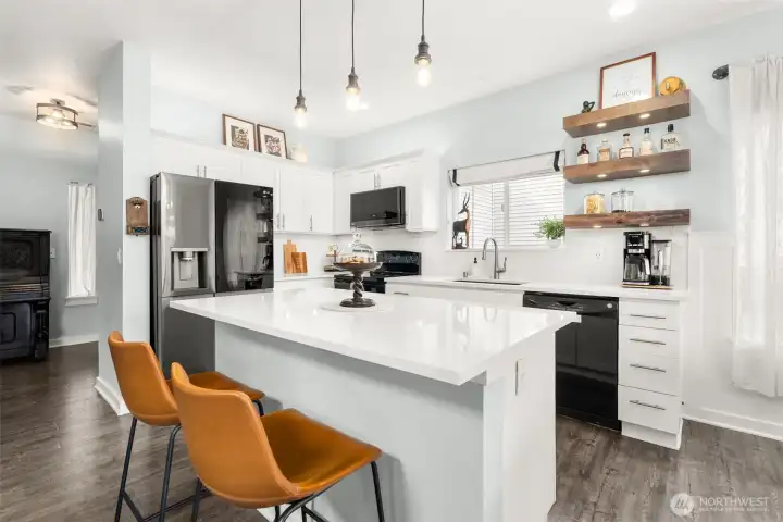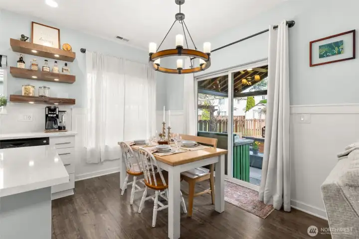 Beautifully maintained and thoughtfully updated, this Portofino neighborhood home offers comfort, style, and an exceptional location. Featuring 3 bedrooms and 2.25 baths, the home showcases LVP flooring, white painted kitchen cabinets, tile backsplash, and a stunning stone-wrapped fireplace with custom built-ins surrounding it. The vaulted primary suite includes a private ¾ bath and a spacious walk-in closet. Enjoy outdoor living with an oversized covered patio, additional patio space, and a beautifully landscaped yard complete with a garden shed. Additional highlights include a turfed front yard, heat pump for efficient heating and cooling, and a welcoming covered front porch. Located in the highly sought-after DIERINGER SCHOOL DISTRICT, with parks, trails, shopping, and restaurants nearby, plus convenient commuter access to Hwy 167, Hwy 18, and I-5.