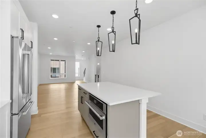 This stunning 2-bedroom, 2.5-bathroom townhome is a spacious retreat w/ an air of luxury. Boasting 9-foot ceilings & 8-foot doors, the open layout creates an inviting atmosphere throughout. The stylish kitchen is equipped with upgraded JennAir appliances, quartz counters and a large island perfect for culinary enthusiasts. Convenience meets comfort with a side-by-side W+D. The townhome features a contemporary design with metal open railing, a main floor entry for easy access and two closets in the primary. Enjoy walking in the trees on the community trail or hit the Eastlink trail just across the street. Reg Policy #4675-Broker must accompany and personally register buyer at first visit, or no BBC will be paid. Call to schedule your tour!